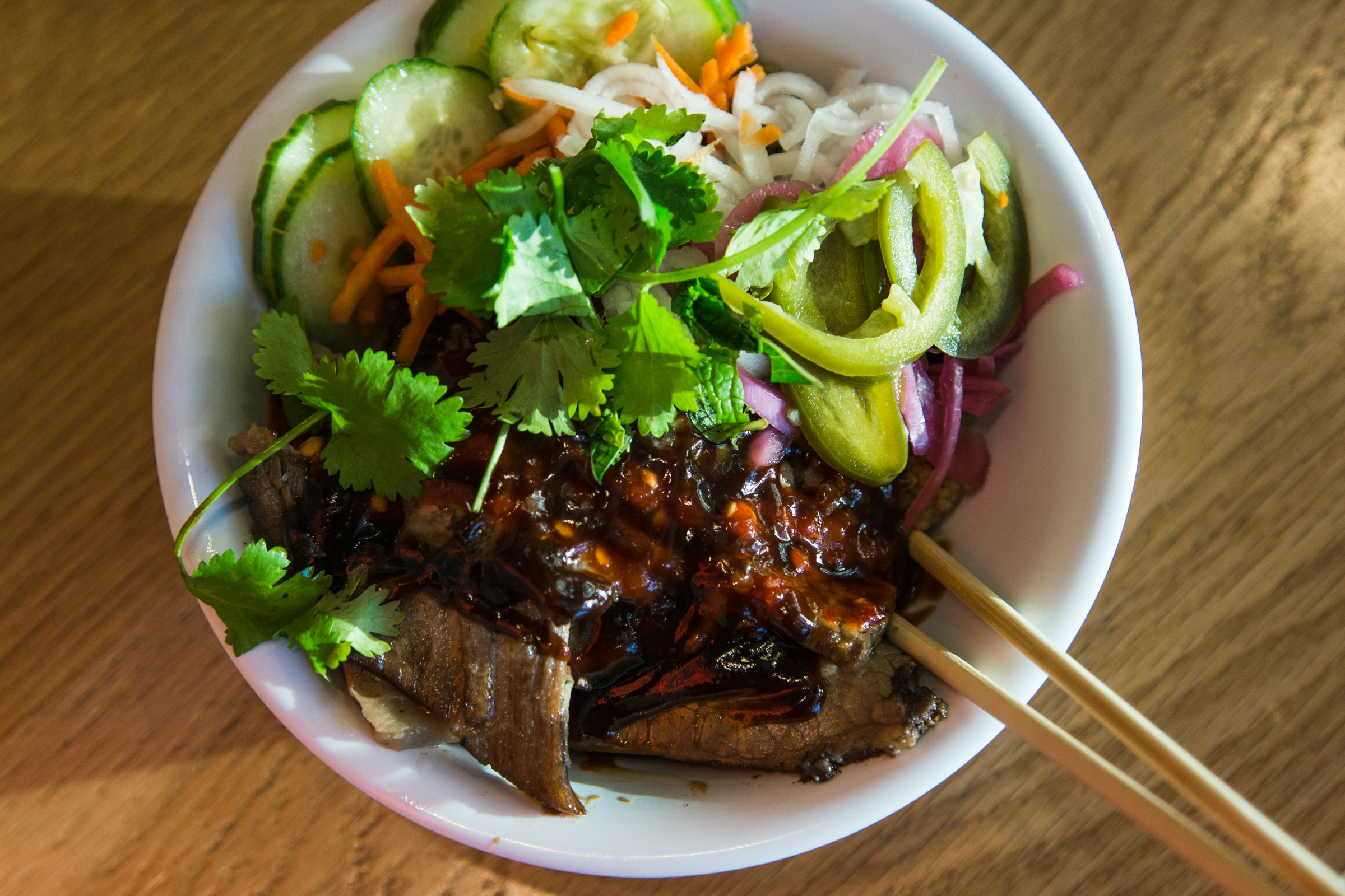 Lowdown: Brothers Rob and Lon McGowan opened Daikon almost two years ago in Governor’s Park. The modern, counter-service joint operates in a similar manner to Chipotle — patrons are encouraged to build highly customizable sandwiches and rice or quinoa bowls on the line. A handy banh mi diagram shows customers an easy visual for the range of ingredients — including cilantro, mint, Thai basil, pickled vegetables, fresh cucumbers and a variety of sauces — that make up the sandwich. Traditional ingredients like pork are joined by braised jackfruit, 36-hour brisket, lemongrass tofu, smoked salmon and umami mushroom. To make matters even less orthodox the restaurant offers sauces that include chimichurri and teriyaki on top of the more classic sambal, sweet chili and hoisin. The concept appears built for expansion, with a new location just having opened in Boulder.