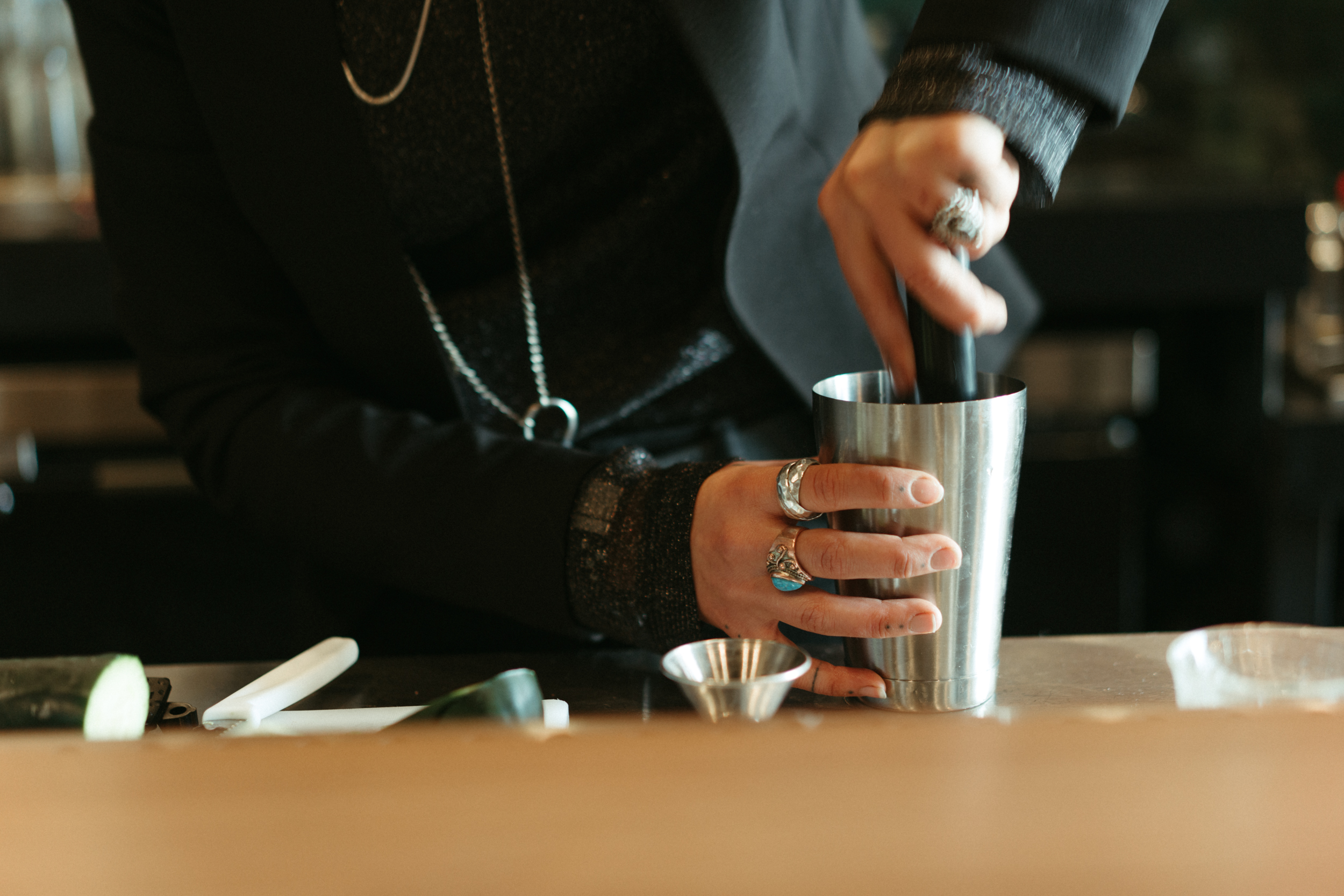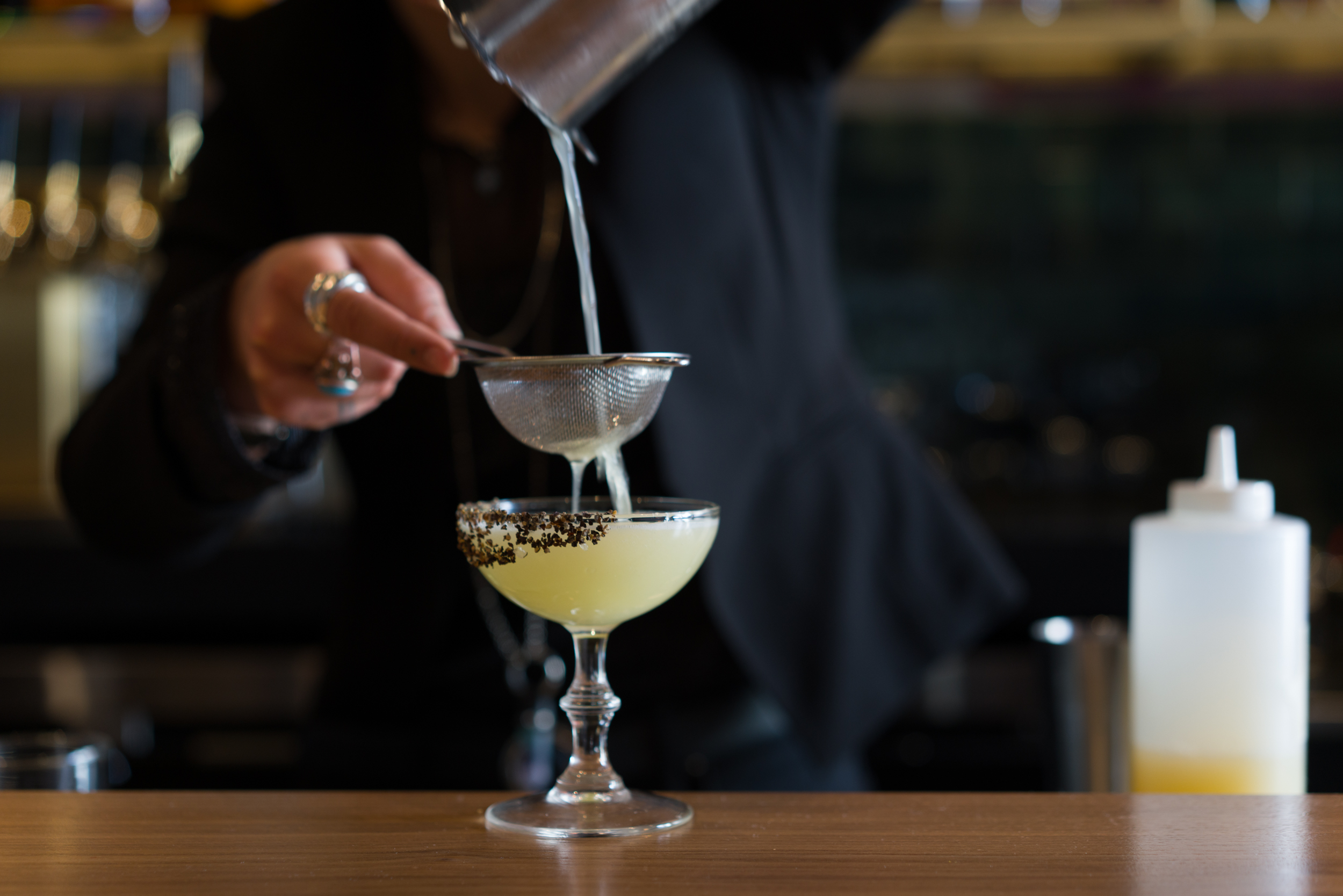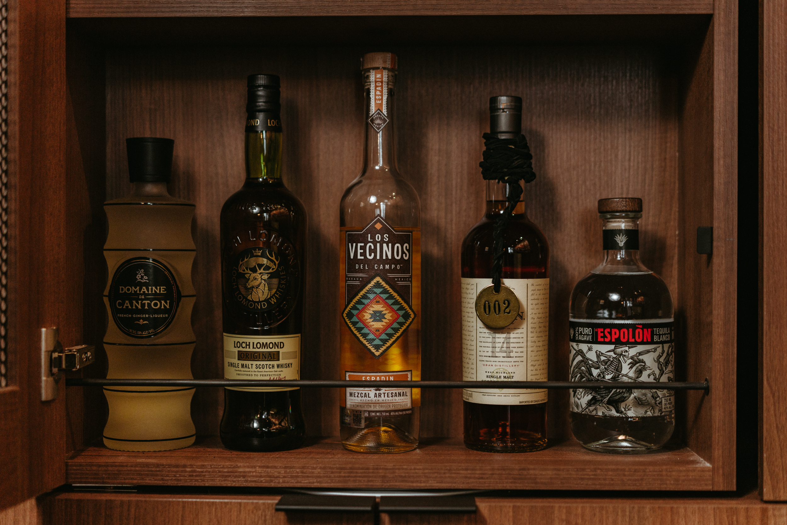 The space — designed by Tamra Holton — is intentionally sparse. Rich velvet seating, a staff-curated bookshelf and an elegant wood bar all nicely support Pichiavo’s massive centerpiece. A locker program allows return guests to reserve a space for $50. Patrons can select a bottle of their choosing, which the business will order and stock. Cocktails made from the reserved bottle will be roughly half the price of the already affordable drinks.