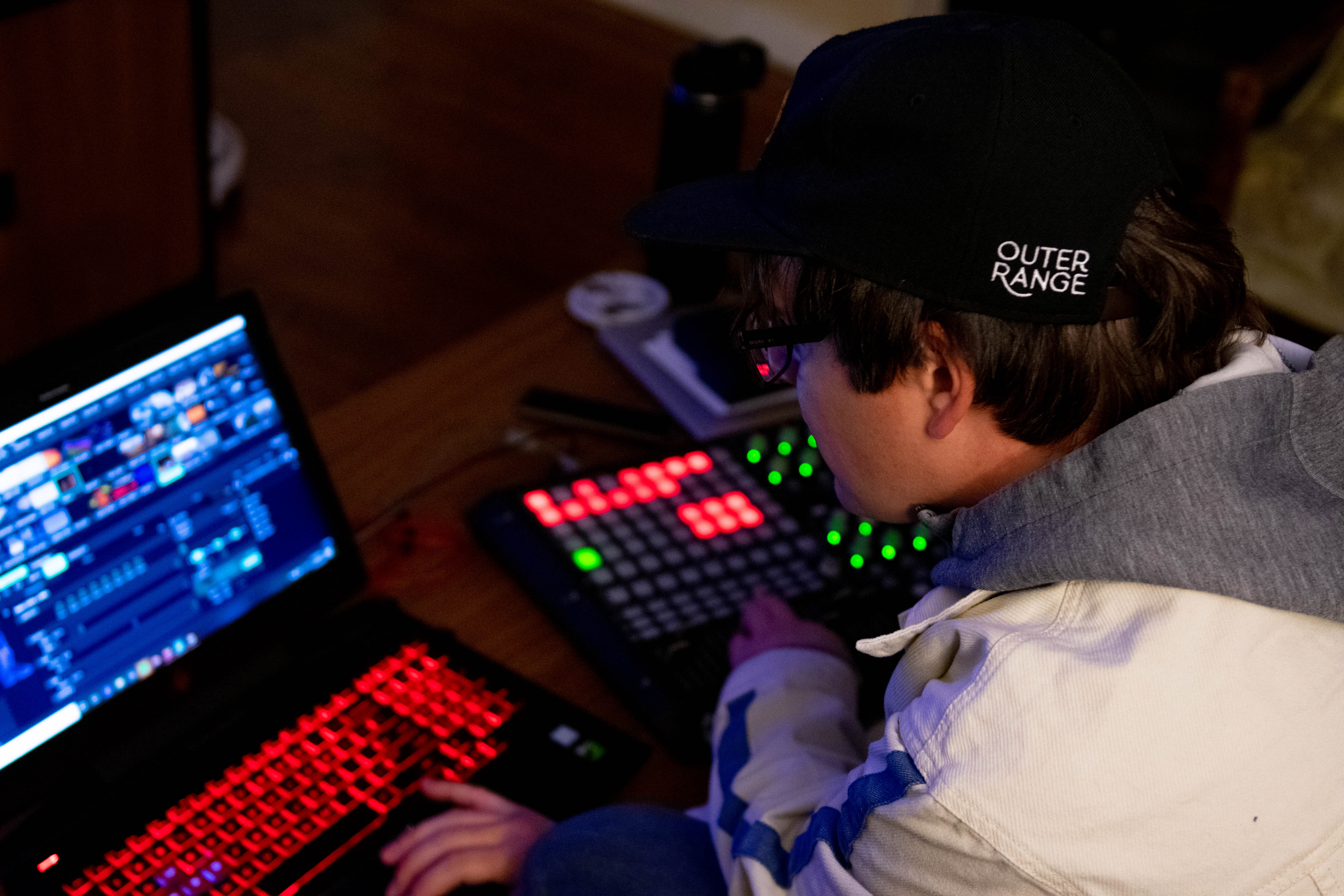 Andrew Ininns: I guess everybody’s seen it, but, it’s not conventionally something people talk about. It doesn’t really have a name for it, I guess, which is kind of a weird thing. Like everybody knows what a musician is and all the instruments and everything, but I guess the best word for it is like a “visualist” or a visual designer. In terms of the actual software behind it, I use Ableton and Resolume which is basically the base program. I also use a bunch of smaller software including one called Synesthesia, which is a really cool audio visualizer. So I’m live. I play with bands and I basically play the visuals that are behind the band as if they were kind of a live instrument. I try and play it as live as possible. So I’ll use some things that are generated via audio and stuff like that. But for the most part, it’s kind of triggered in the moment. So it’s kind of fun.
