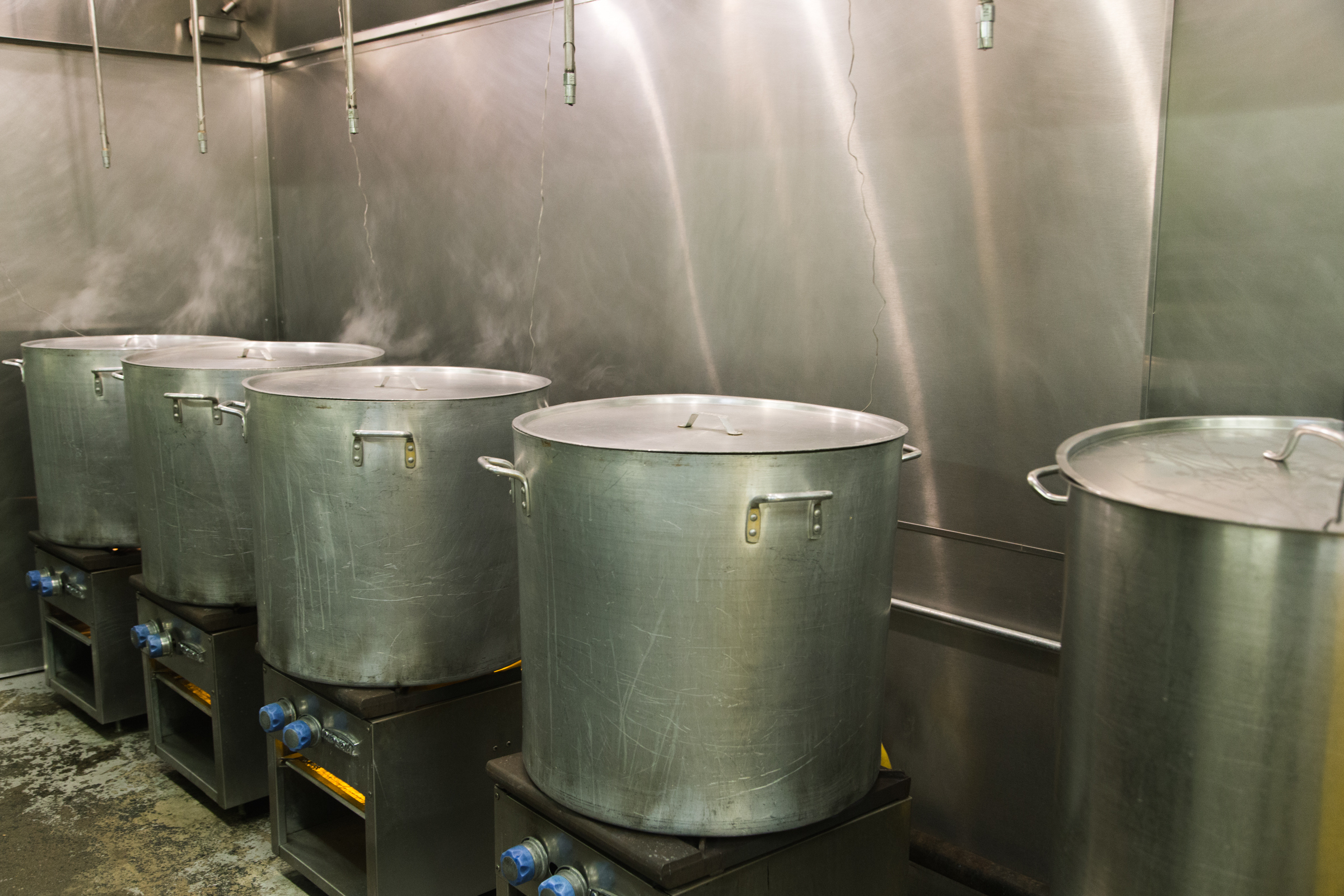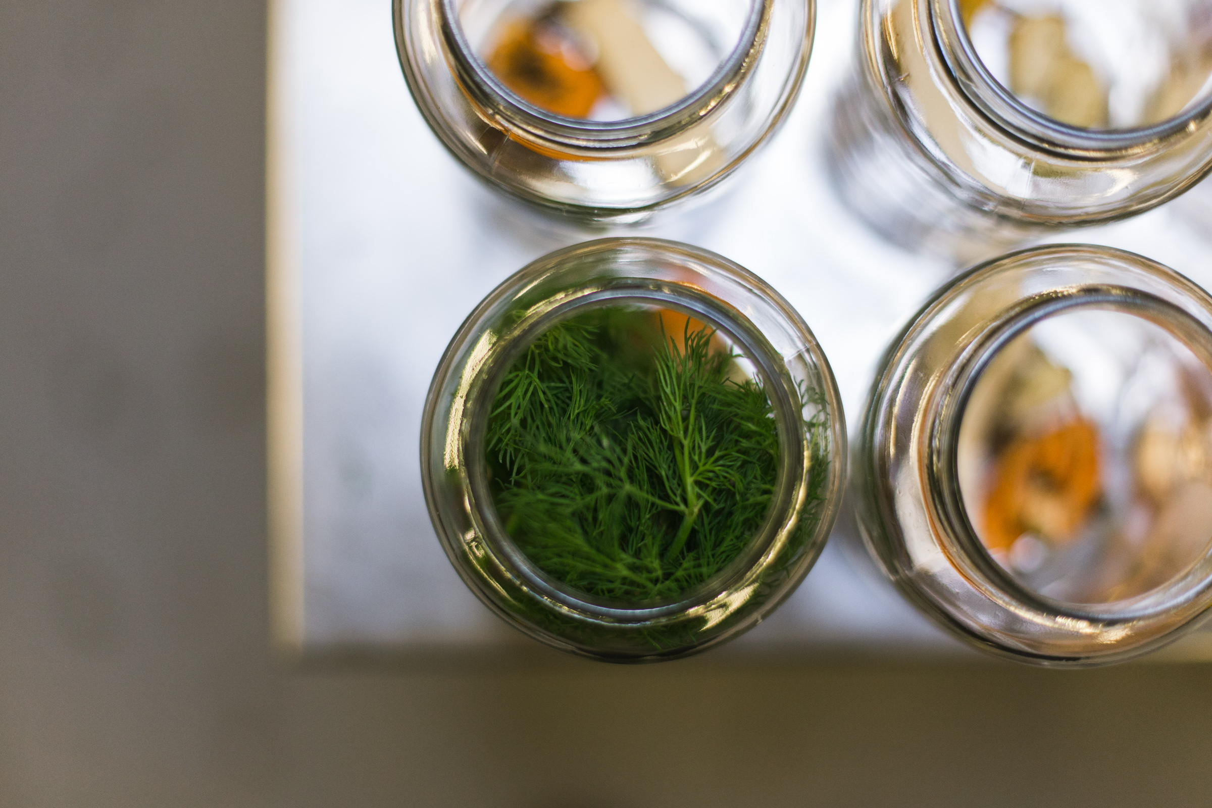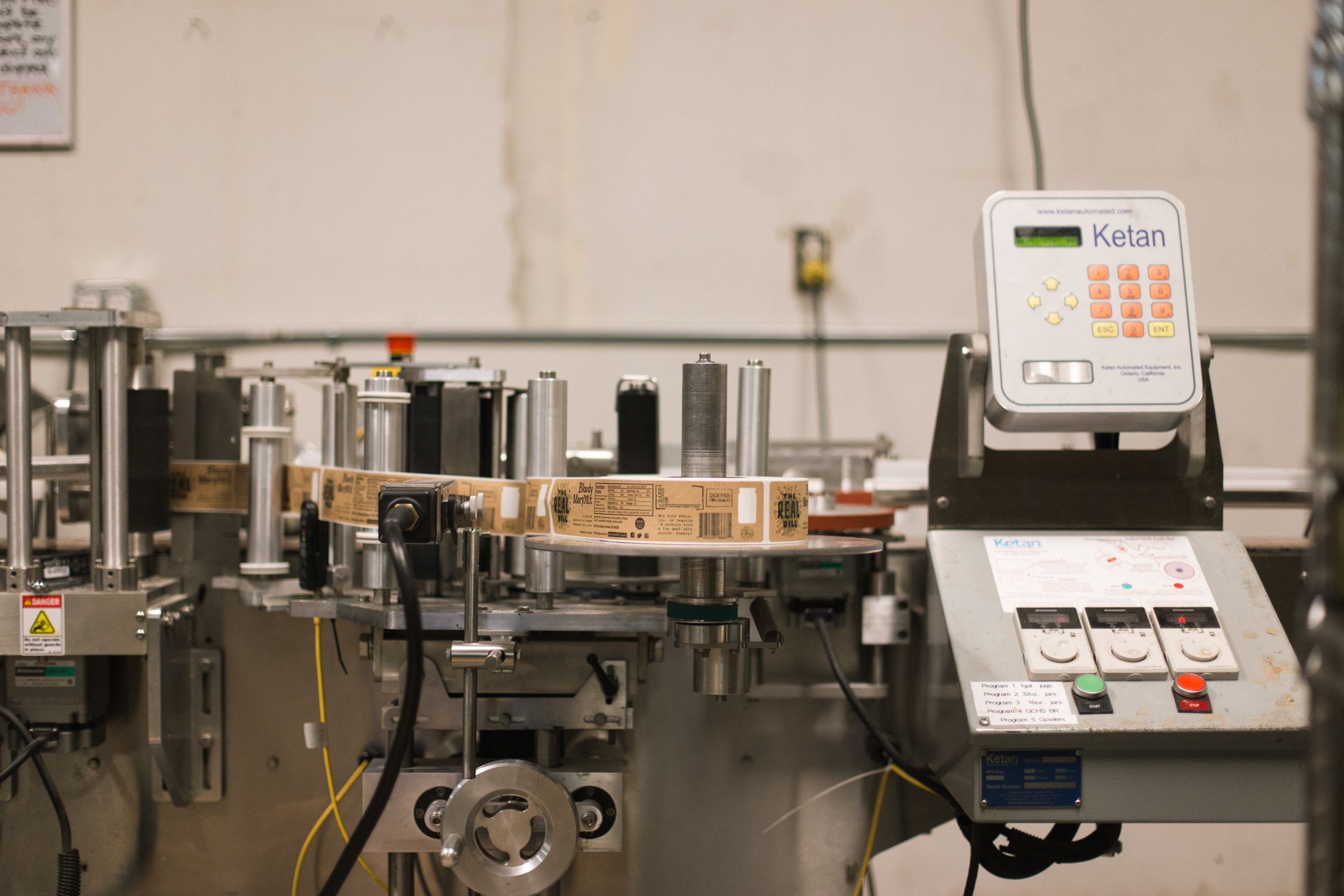 Every week the Dillery goes through 3,000 – 4,000 pounds of fresh produce. The three pickle mainstays are the Caraway Garlic Dills, the Habanero Horseradish Dills and the Jalapeno Honey Dills. The elegant jars are individually composed — spices, herbs, peppers and cucumbers are artfully arranged, then a brine is added. Almost everything is done meticulously by hand. The label machine is one of two automated processes in the facility — the other being used to fill bloody mary mix — which now accounts for 70% of what goes out the door. “We approach packaged foods with a chef’s mentality,” said DuBois, also citing that the production style has taken a lot of cues from the craft beer industry. “We intentionally sacrifice efficiency for quality,” added Park.