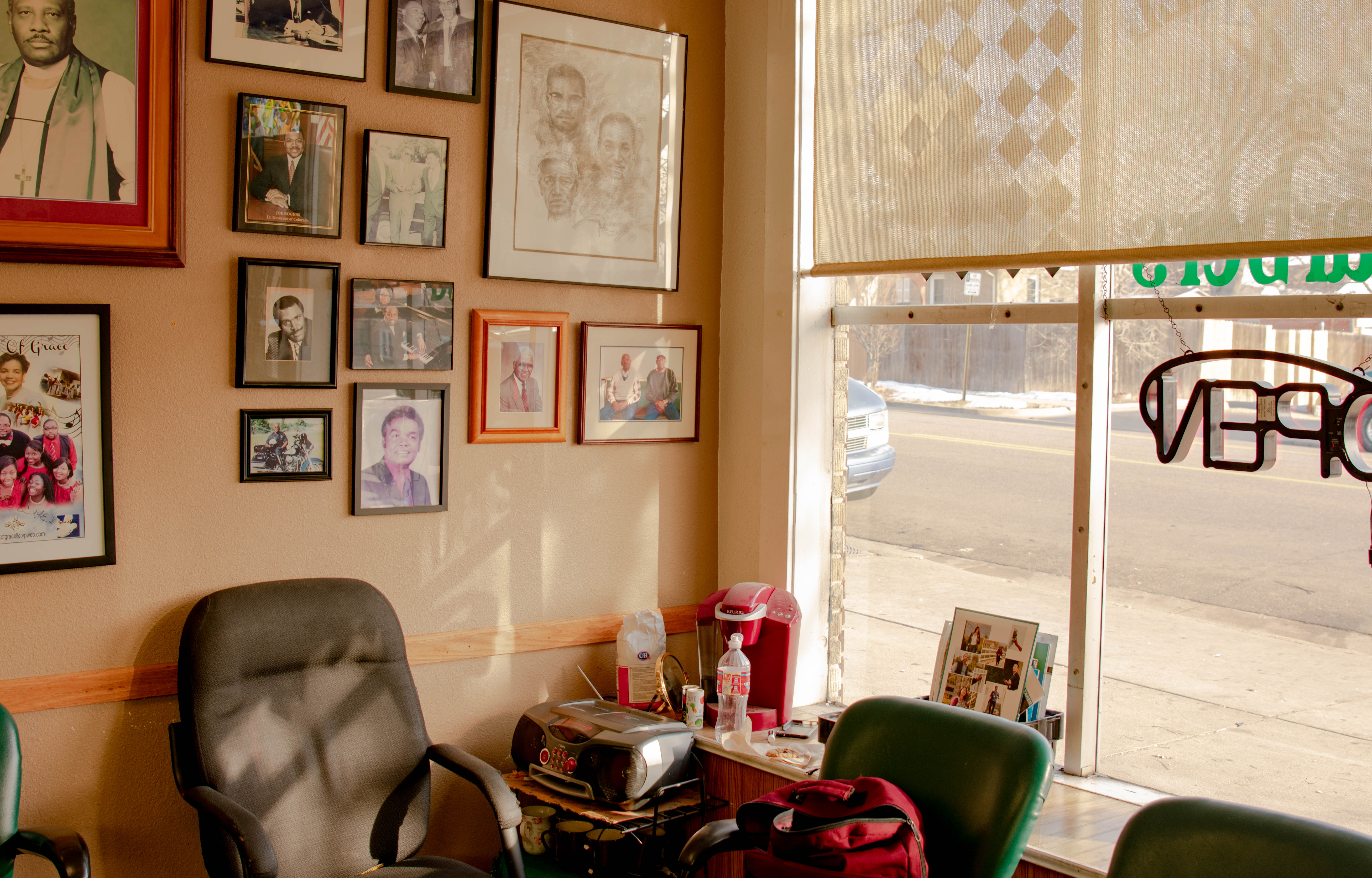 The centerpiece of many Black neighborhoods is the barbershop. A confluence of buzzing razors and casual conversation, the barbershop is more than a place to sharpen a lineup or freshen up a bald fade, it’s a safe space for communities who often lack one, and Jesse’s Park Hill Barbers is no exception. Owner and lead barber, Jesse Scott has been in the game for more than 40 years, his cluttered shop a testament to his dedication. Walls lined with prominent Black figures and crevices stuffed with plaques and certificates honoring his work in the community tells a story that has little to do with cutting hair, as much as it does connect to Black lives in a meaningful way. To an outsider, Scott’s humble shop is just a neighborhood hole in the wall, but to the Park Hill community, it’s a crown jewel — a place overflowing with the riches of Black culture, past and present, and the wisdom at the helm, charging boldly into the future.