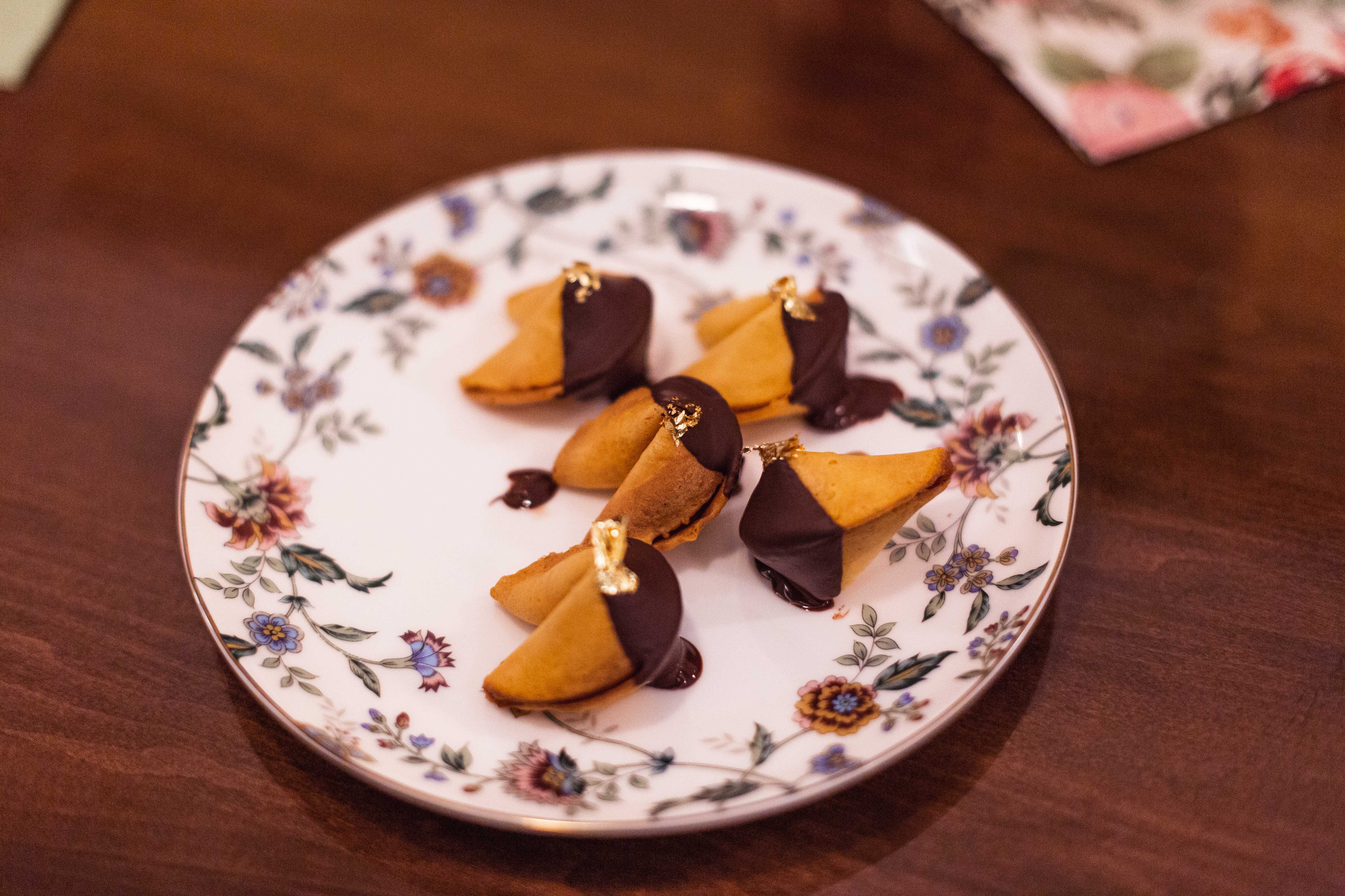 The menu includes one page of charming bar snacks and several pages of inventive cocktails, each complete with quotes from Parker that range from lavish to suggestive — each giving a glimpse into the woman’s decadent worldliness. The Putting on the Ritz ($18) — that combines Legendary sturgeon caviar with cucumber and Ritz crackers — probably best exemplifies Milly’s irreverent approach. The deviled eggs ($4) with Vadouvan French curry and a scallion ginger relish are a bit tamer but still manage to give the classic a cosmopolitan facelift. The fortune cookies (mp) — with chocolate and a garnish of edible gold leaf —are the most blatant display of the place’s flagrant upscaling and delight both in flavor and poise.