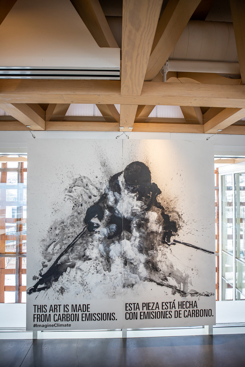 Imagine Climate partnered with the co-founder of Graviky Labs, Anirudh Sharma, to bring AIR INK pens to four artists who are based in the Roaring Fork Valley — Kate Howe, Chris Erickson, Kelly Peters and Brian Colley. The artists were tasked with drawing an eight-by-eight-foot billboard that will be on display for the entirety of the month-long summit, paired with a bilingual message in English and Spanish that reads “This art is made from carbon emissions/Esta pieza esta hecha con emisiones de carbono.”
