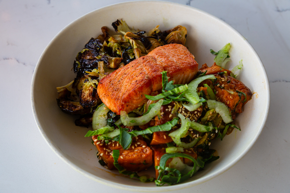 The menu at Flower Child was created to suit all diet types with vegetarian, vegan, gluten-free and dairy-free options. But omnivores don’t fret – there are plenty of meat options as well. The menu consists of small plates, salads, wraps, grain bowls and entrees with the option of adding salmon, steak, chicken, shrimp or tofu to any dish. The entree option even allows you to build your own meal by choosing a protein and two sides or three vegetarian sides. Some favorites include the tomato toast with goat cheese and pistachio pesto ($7.50), Vietnamese crunch salad with a spicy lemongrass vinaigrette ($8.75), Mother Earth Bowl with red pepper miso vinaigrette ($9.95) and the side of red chile glazed sweet potato. The menu changes seasonally so expect some new dishes to appear this spring – the vegan ramen bowl was a new addition as of about a week ago.