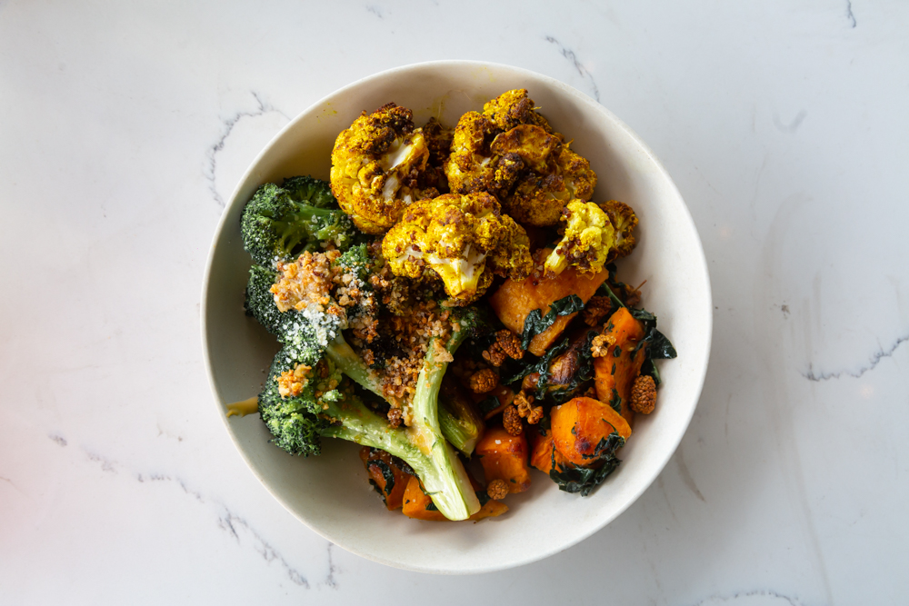 According to its website, Flower Child is on a mission to “radiate positively delicious vibes,” and you’ll feel that in its design. The restaurant is decorated with brightly colored artwork, fun wallpaper and many odes to lemons and sunshine – the epitome of summertime joy. Even in the middle of winter you’ll feel as if it’s summertime inside the restaurant. “We put a lot of thought and creativity into the aesthetic,” said Petrosky.