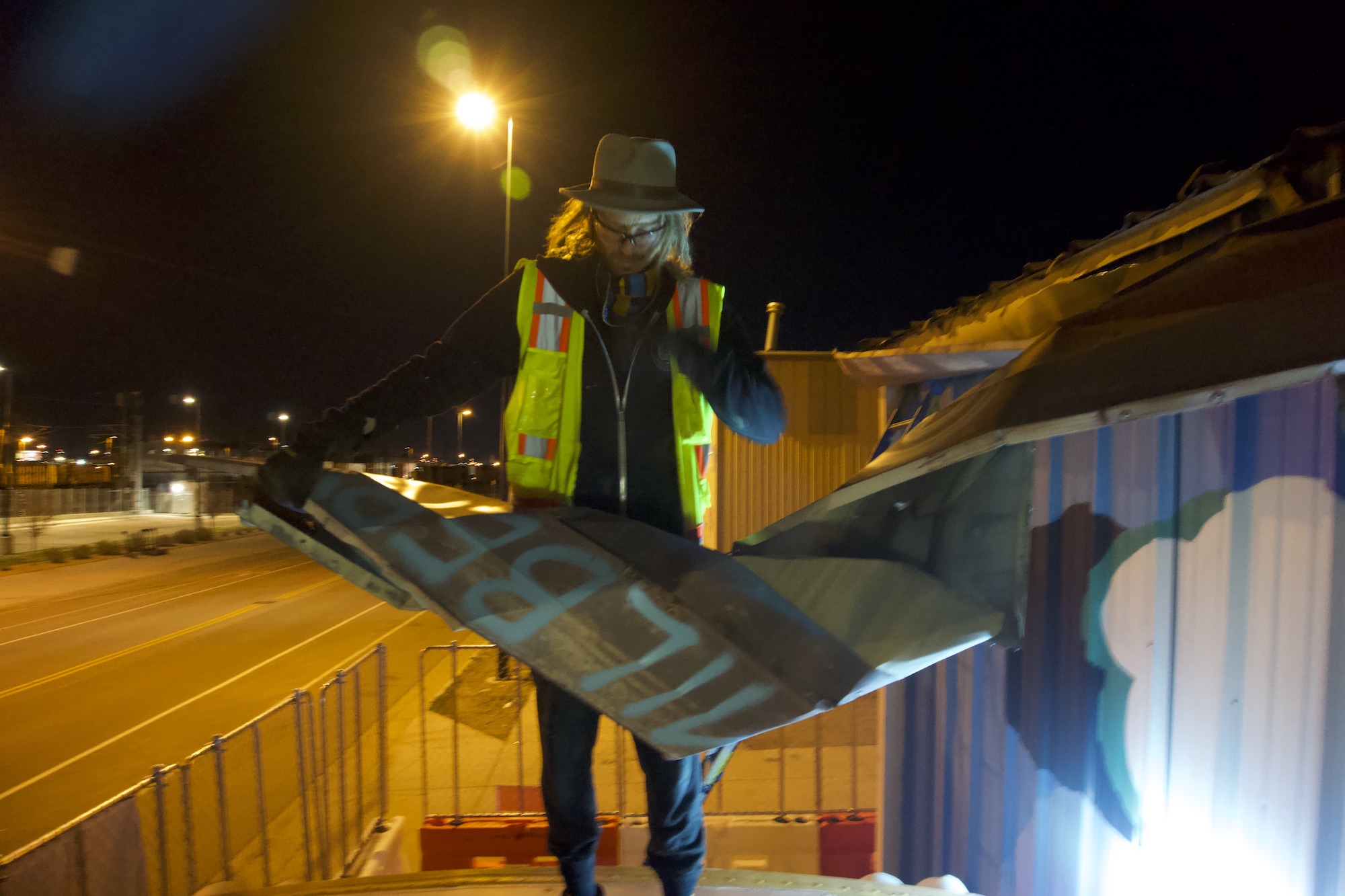 “We pulled the entire panel off the building, grinded the screws out of it and sliced the entire gutter off the top to free it from the wall,” explained Milbery. His roommate, Andres Delgado, documented the entire process and lent a helping hand, along with Campbell’s wife Kimberly.