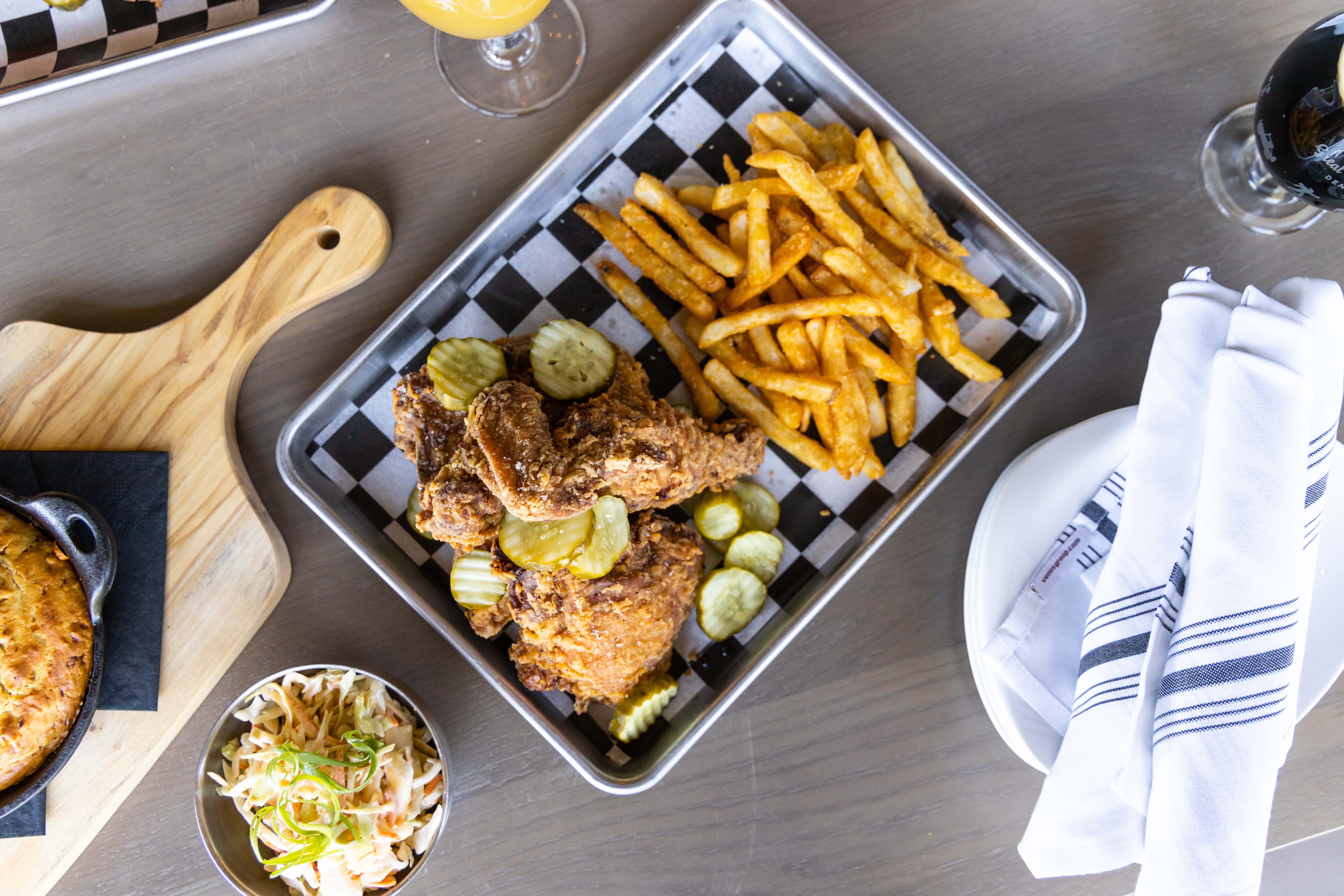 The partnership plays to both company’s strengths. “Great Divide knows beer but food is not necessarily in their wheelhouse,” said Sandy. “They’re not in the food business, they don’t wanna be in the food business,” echoed Shipp. The menu — helmed by Vibe’s corporate chef and president of operations Justin Adrian — features a range of well-crafted bar staples — starters, wings, soups, pizza, chicken, steaks, burgers and signature entrees. Adrian, who also acts as the executive chef at Tstreet, has included some of the favorite items from the Lakewood location.