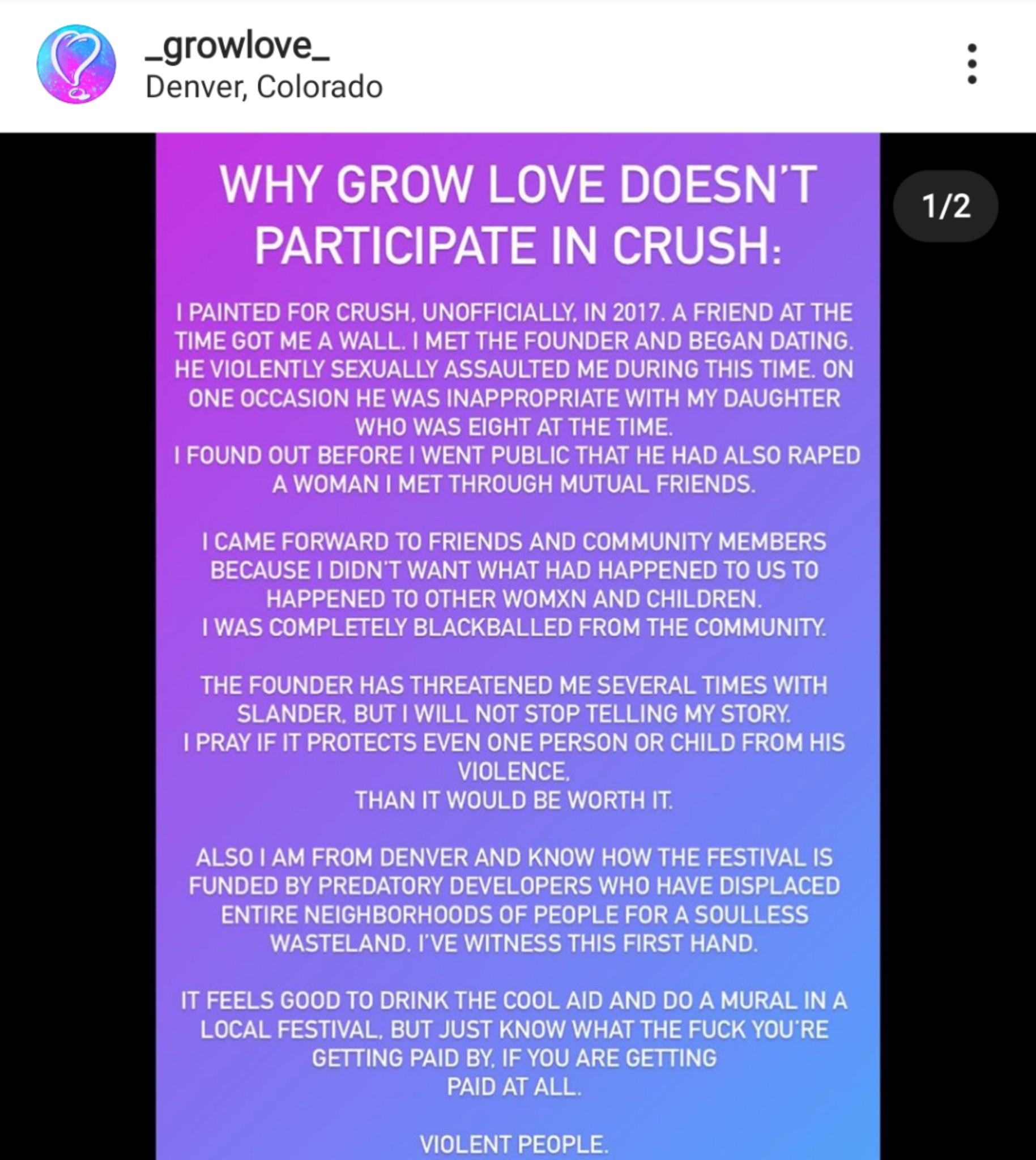 the crush event and murals are a fasad for whats really taking place in the neighborhood and the blatant disregard for the long time residents and the artist who are used for there art and don’t benefit from this event.