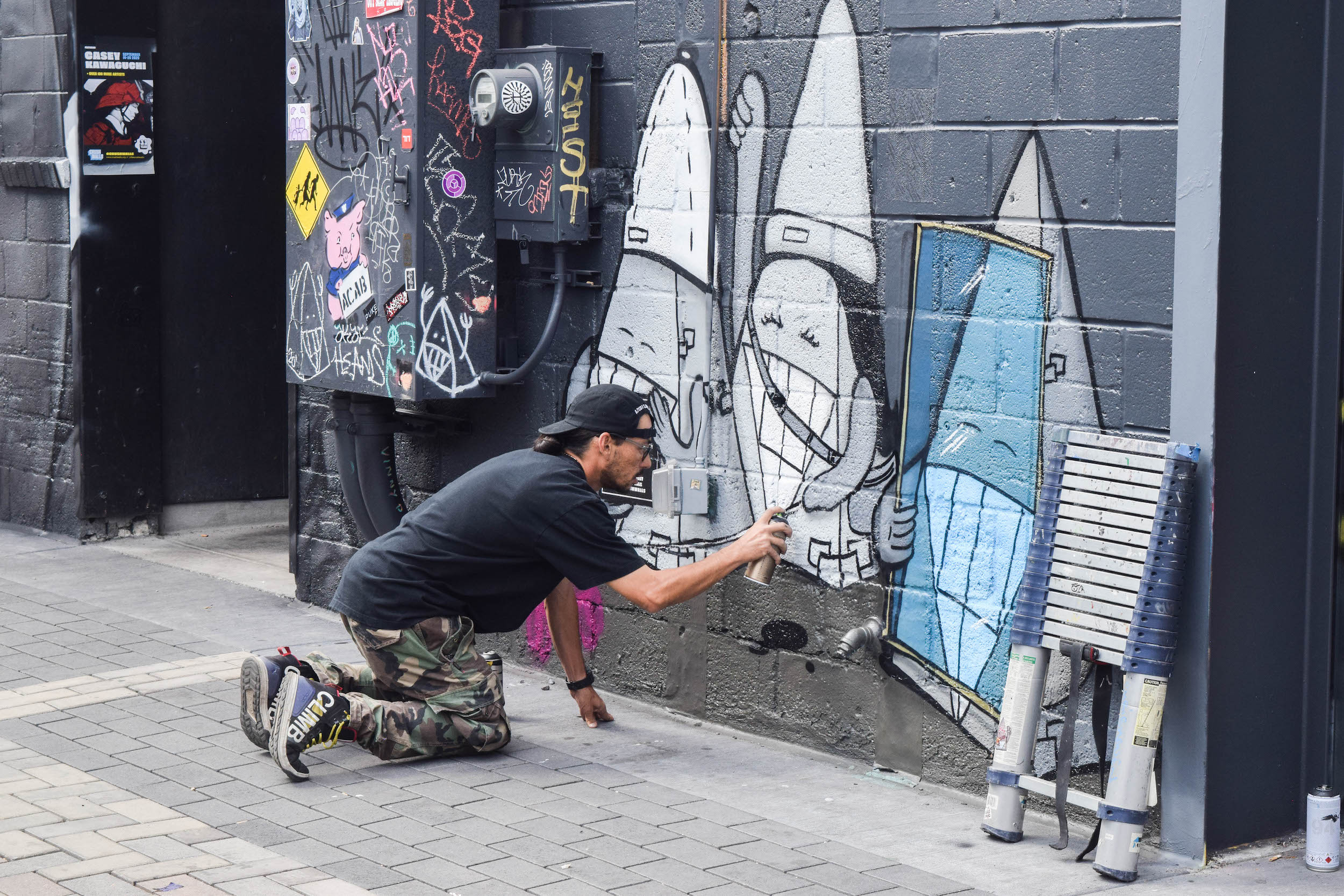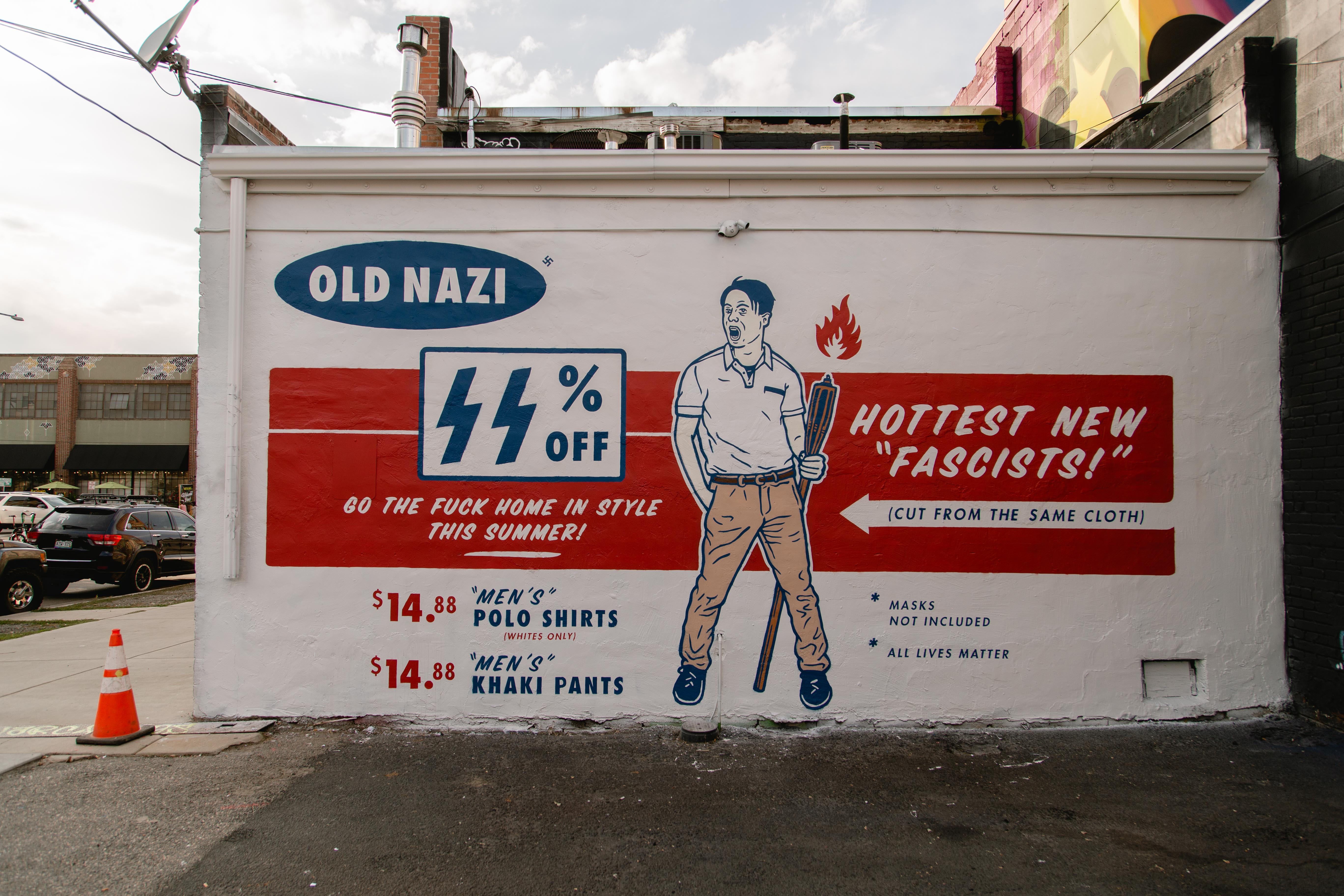 Scot LeFavor forewent his assigned wall in the central alleyway to paint a highly controversial piece on the same wall he painted his dissent of the Kavanaugh trial last year. In this new piece, LeFavor heavily critiques the anti-mask-wearers and, in his words, the “hottest new fascists.”