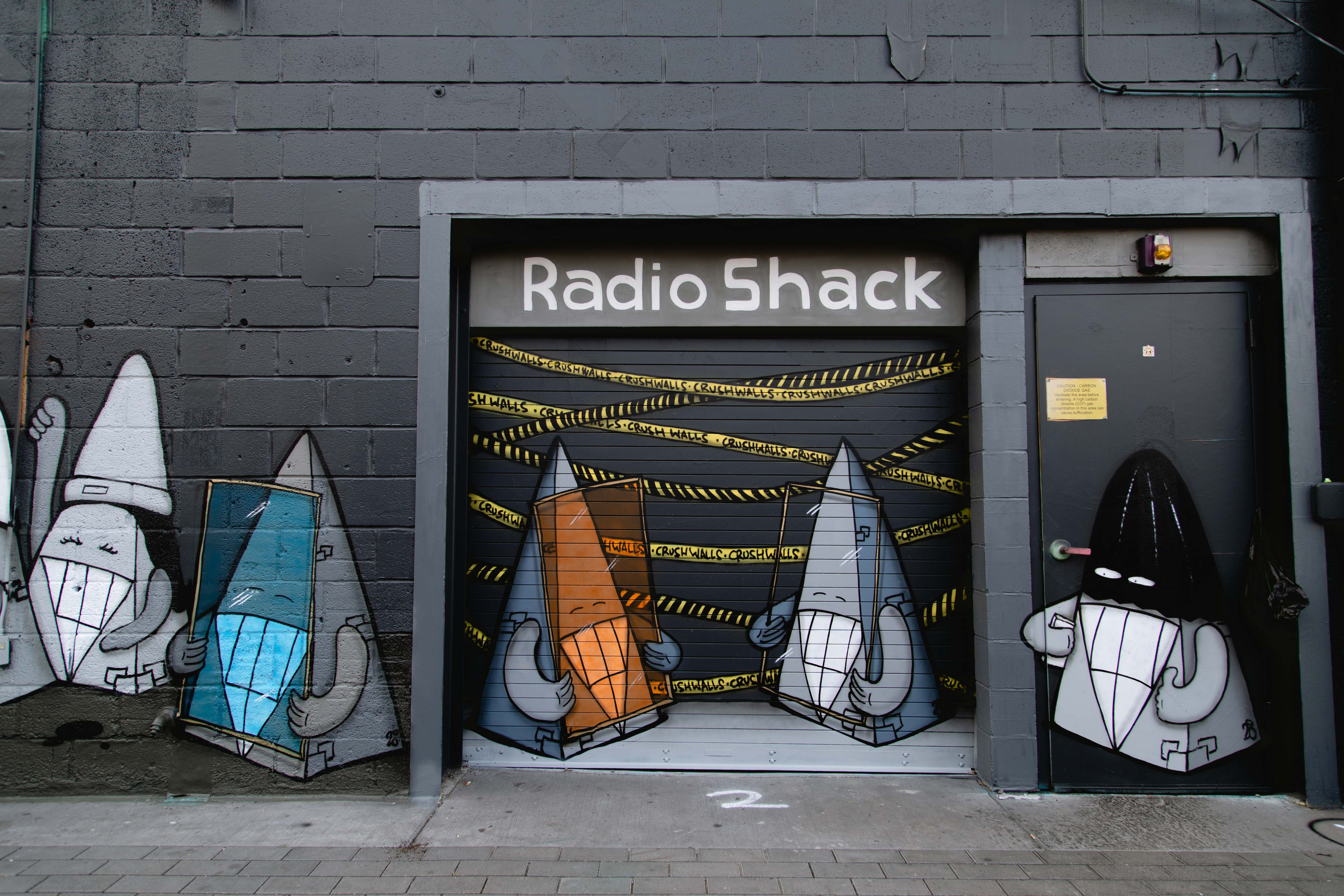 The Lowdown: For the first time in many years, the massive black wall on the north side of Green Spaces was included in CRUSH. The two artists who painted it — Remington Robinson and Jason Graves — were well-suited for the task, since their mural encompasses the spirit of the business (a sustainable co-working spot). Both artists hail from Boulder, but have collaborated at CRUSH and for other Denver murals for many years. Their precision in painting leads to a polished, beautiful mural, and their combined eye for design adds to the architecture of the building, rather than covering it up.