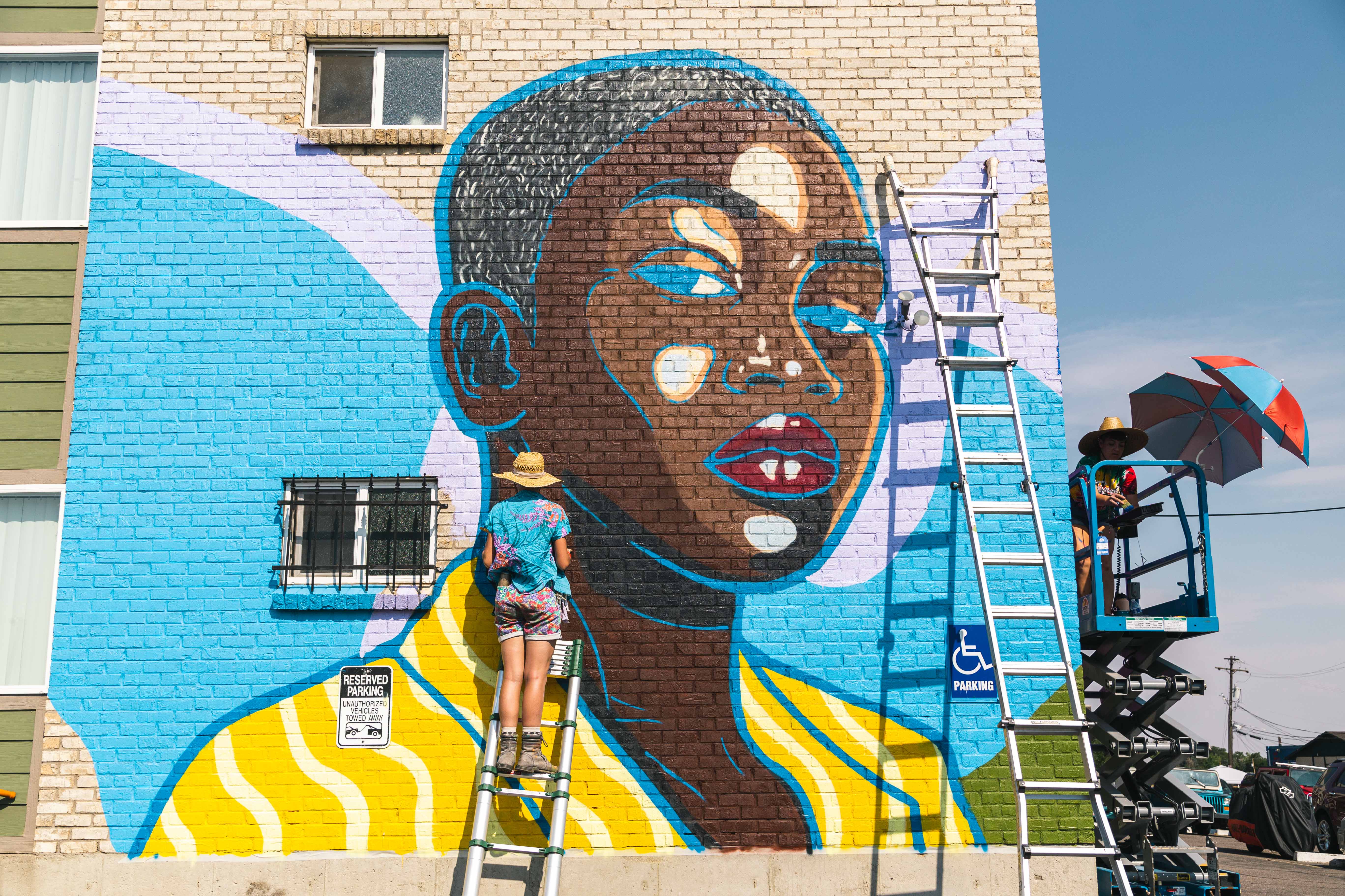 When there are 100 artists participating in CRUSH, it can be hard to decide who to visit or try to see in action. Some visitors will want to exclusively check out local, Denver-based artists who have many other murals spread across the city. Some visitors may be more interested in the internationally-recognized artists who are only in town for the week. And there are a lot of other preferences in between. Thankfully, CRUSH has embraced the diversity of street artists that are in Denver and beyond and boasts a lineup this year stacked with veterans and newbies, women and artists of color.