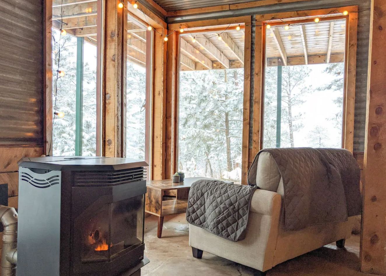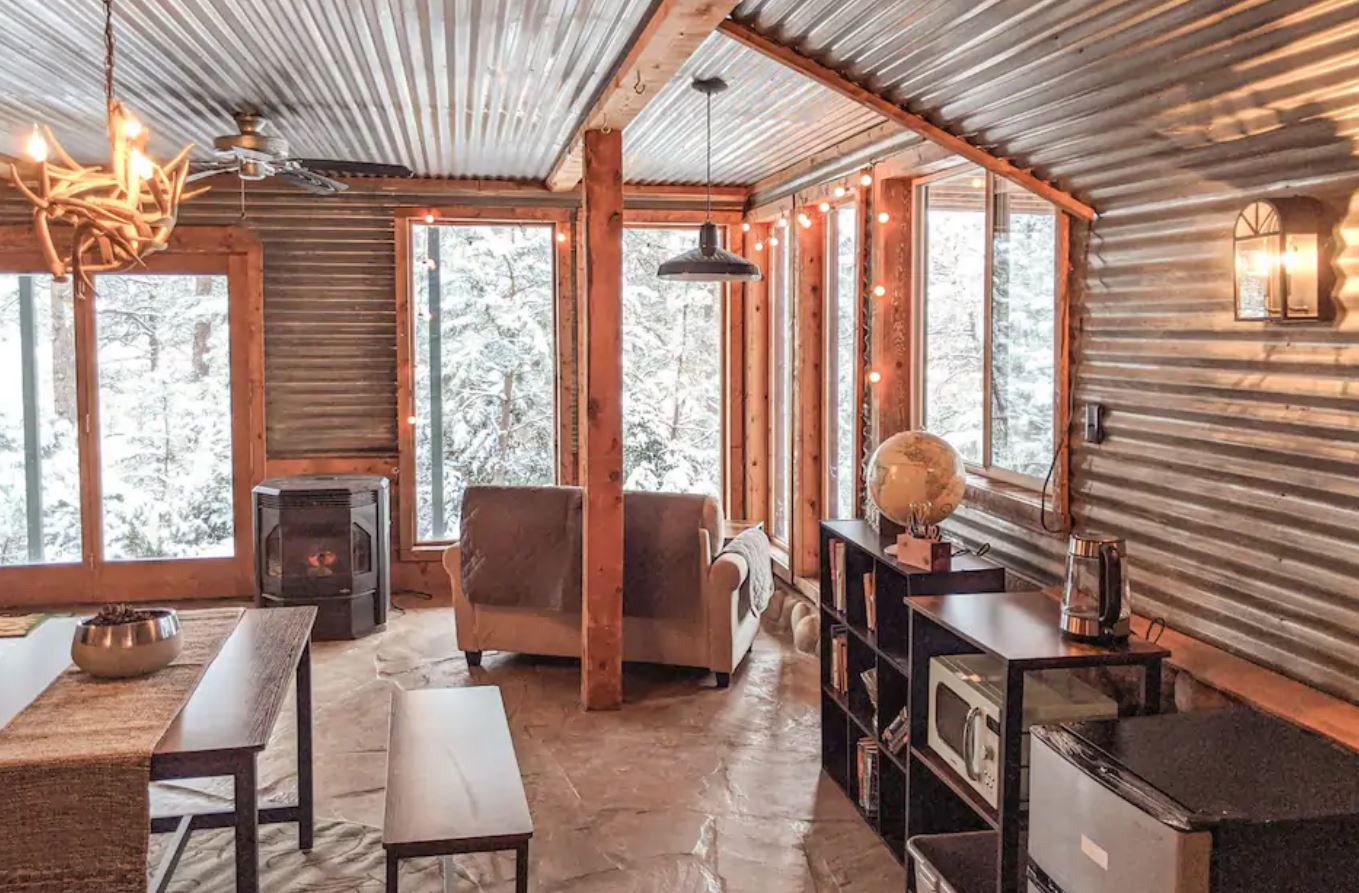 The Lowdown: This tiny home is perfect for couples looking for a cozy getaway. Located only 25 minutes away from Vail — you’ll get a genuine mountain experience while also being near some resort towns. The home is also powered by solar electricity — which means you won’t have to sacrifice TV or internet.