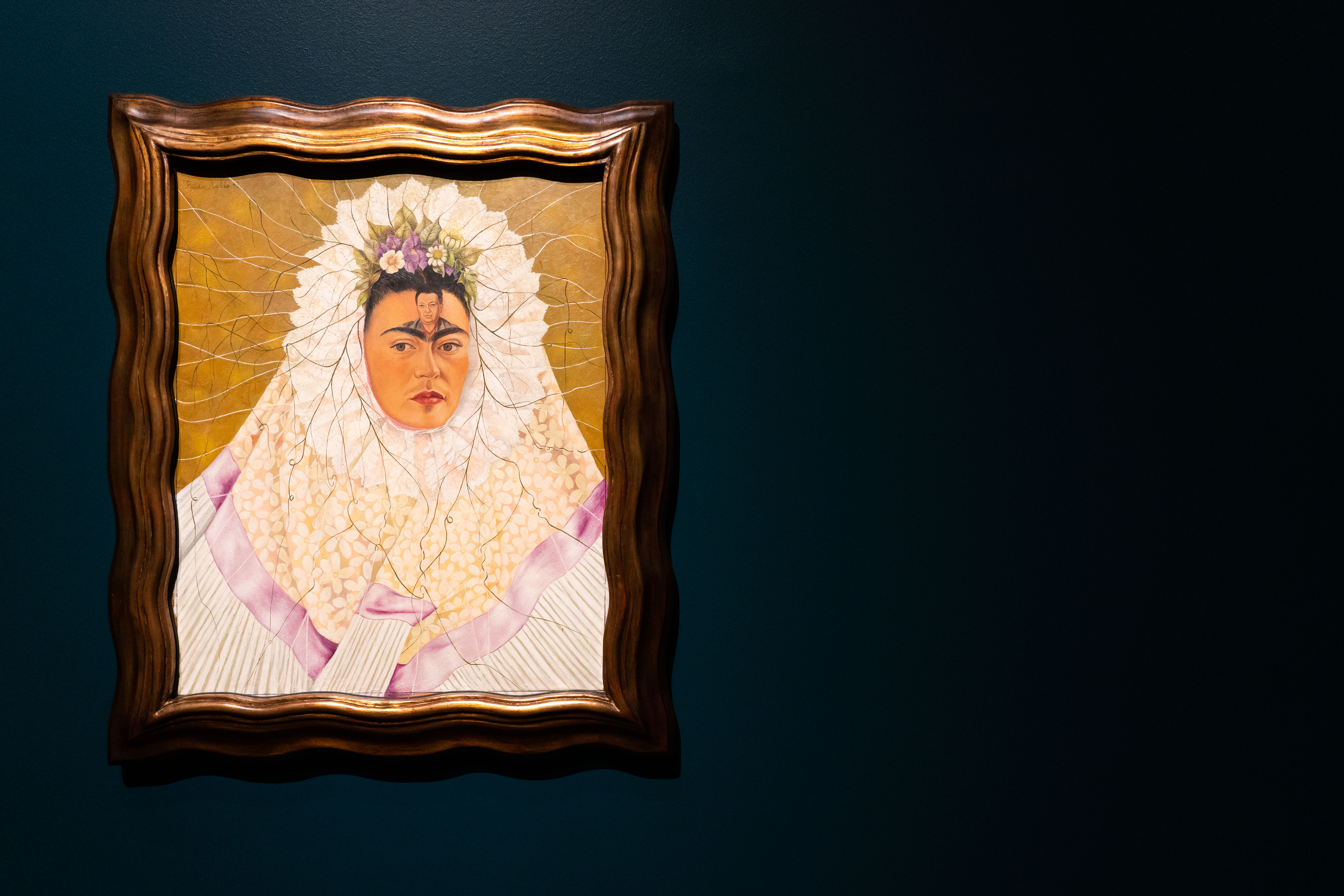 Kahlo and Rivera first married in 1929. By looking at the artwork they created of one another — you might assume they had a flawless love story. However, their relationship was filled with fighting and affairs. They divorced in 1939 only to remarry a year later. The exhibition culminates with visitors being able to view Kahlo’s infamous painting — “Diego on my Mind.” The piece is a self-portrait of Kahlo with a tiny portrait of Rivera stamped on her forehead. The painting implies that not only was Kahlo always thinking of Rivera — but actually considered him to be a part of her. At the same time — the fact that Rivera’s portrait is a miniature one also diminishes his role in her life. Kahlo’s face overpowers Rivera’s — and the mess of webbing and vines that surrounds her appears to trap Rivera. He is certainly a source of her inspiration — yet the relationship struggles are still clearly seen in this single artwork.