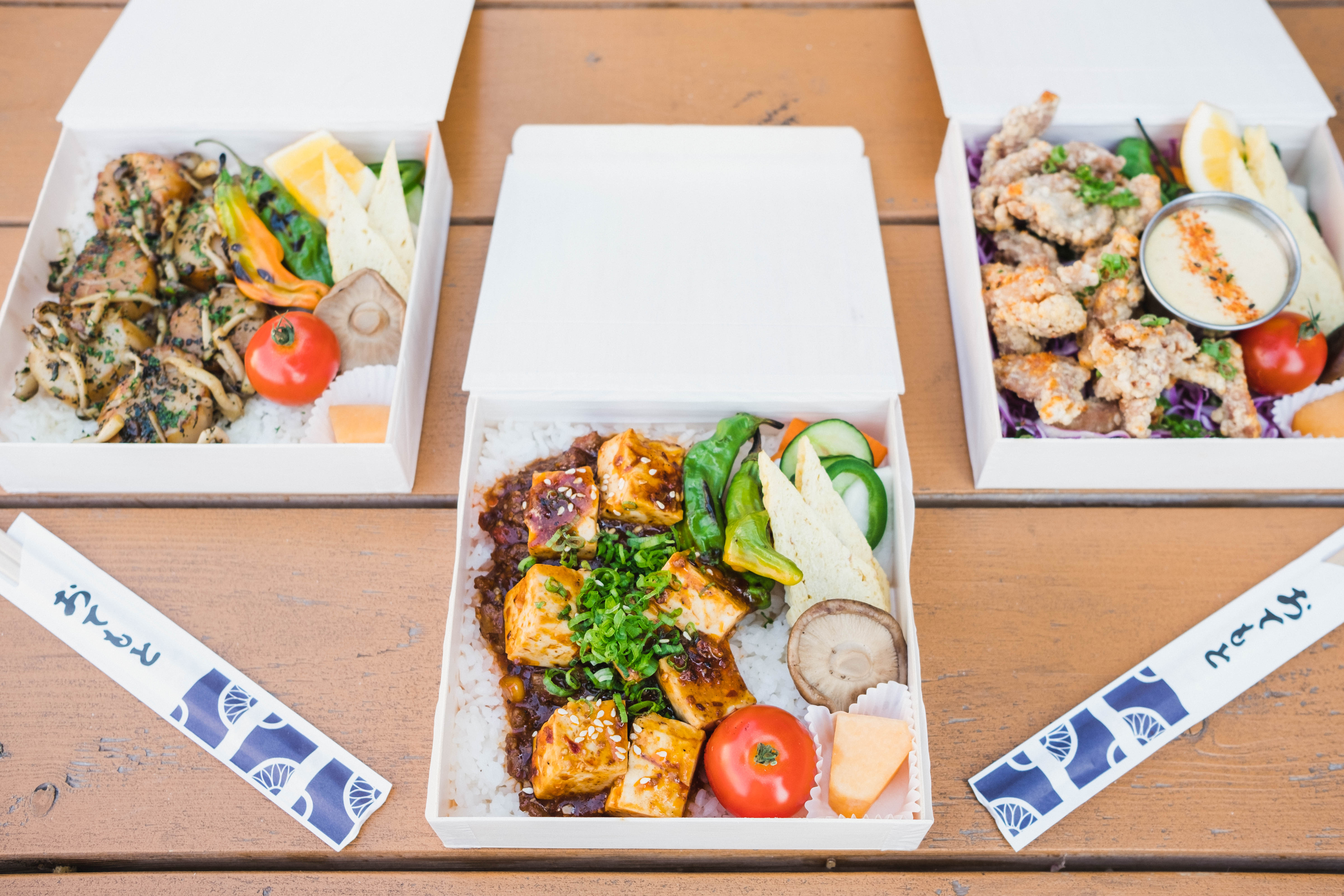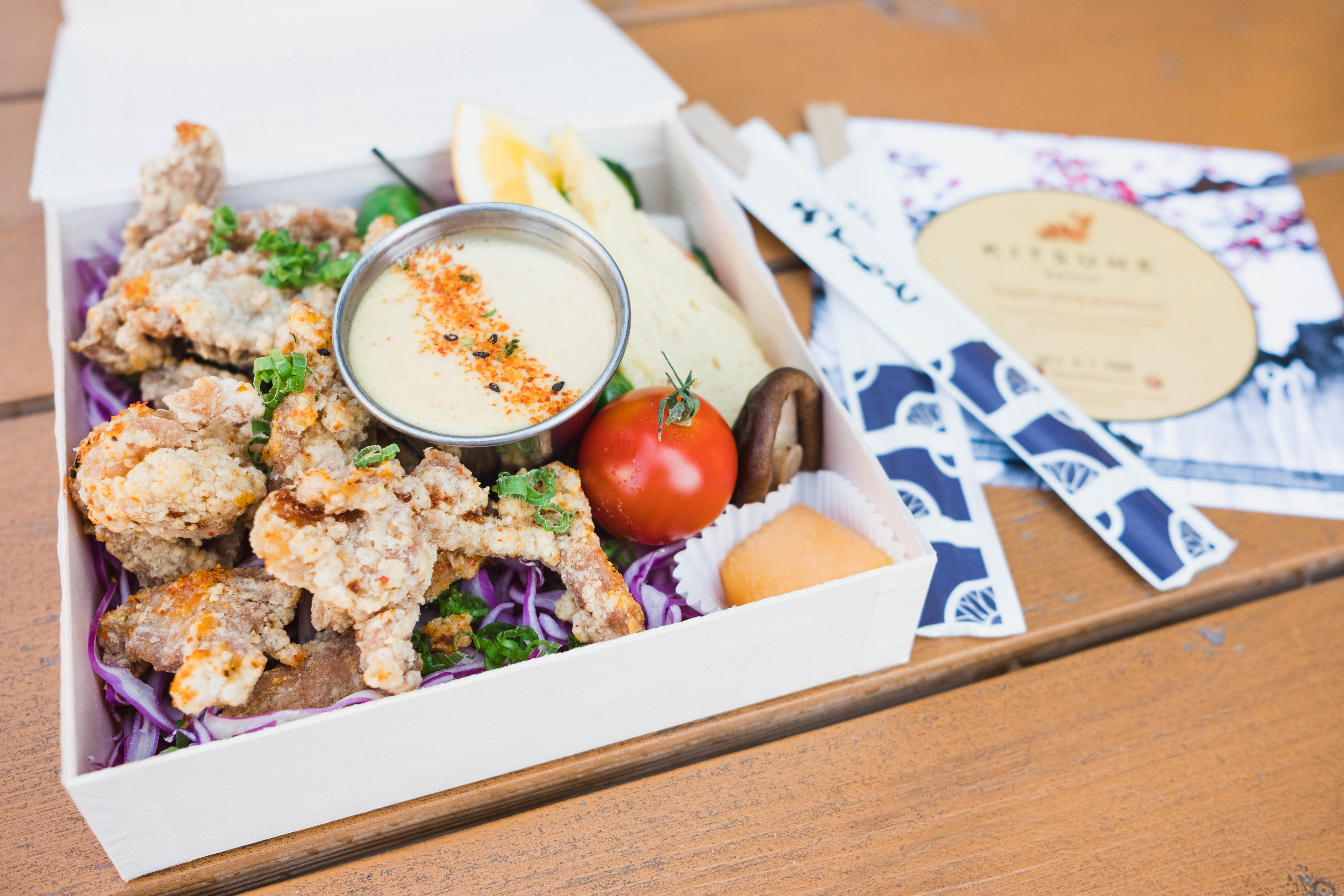 Ahead of Kitsune’s opening, Eng had been toying with the idea well before he and Soell took steps to actually make it materialize. Built around ekiben or train-boxes, the dishes take the shape of the kind of convenient, multi-pronged meals ubiquitous in Japanese train travel. “That’d be kinda cool if Union Station had an ekiben station,” said Eng. When American Grind decided to vacate American Bonded’s kitchen, Eng and Soell were quick to spring at the opportunity to utilize the space. Since opening in March for to-go and in-house delivery, Kitsune expanded its menu to include izakaya snacks when the bar reopened at the end of May. “We’re here until they hike up the rent,” smiled Eng.