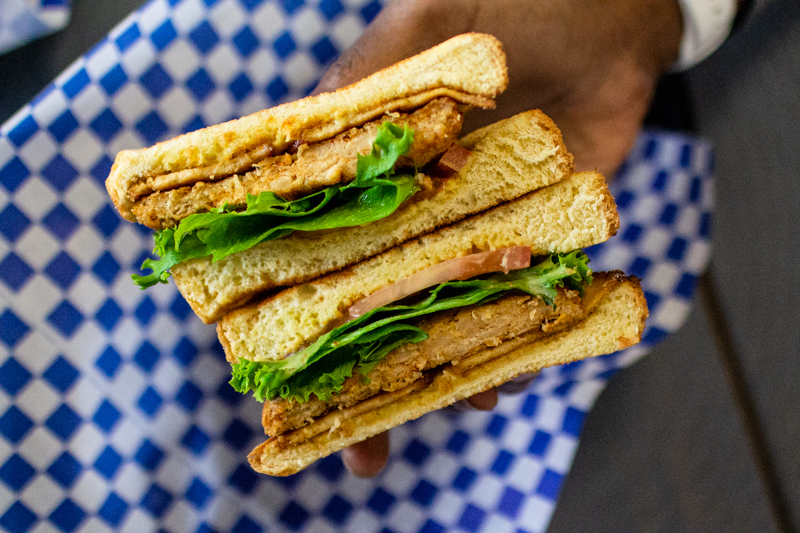 Where poultry would normally be present, it is replaced by a wheat and pea protein while the ground beef substitute is made up of an organic, non-GMO soybean accompanied by vegan bread and fresh vegetables.