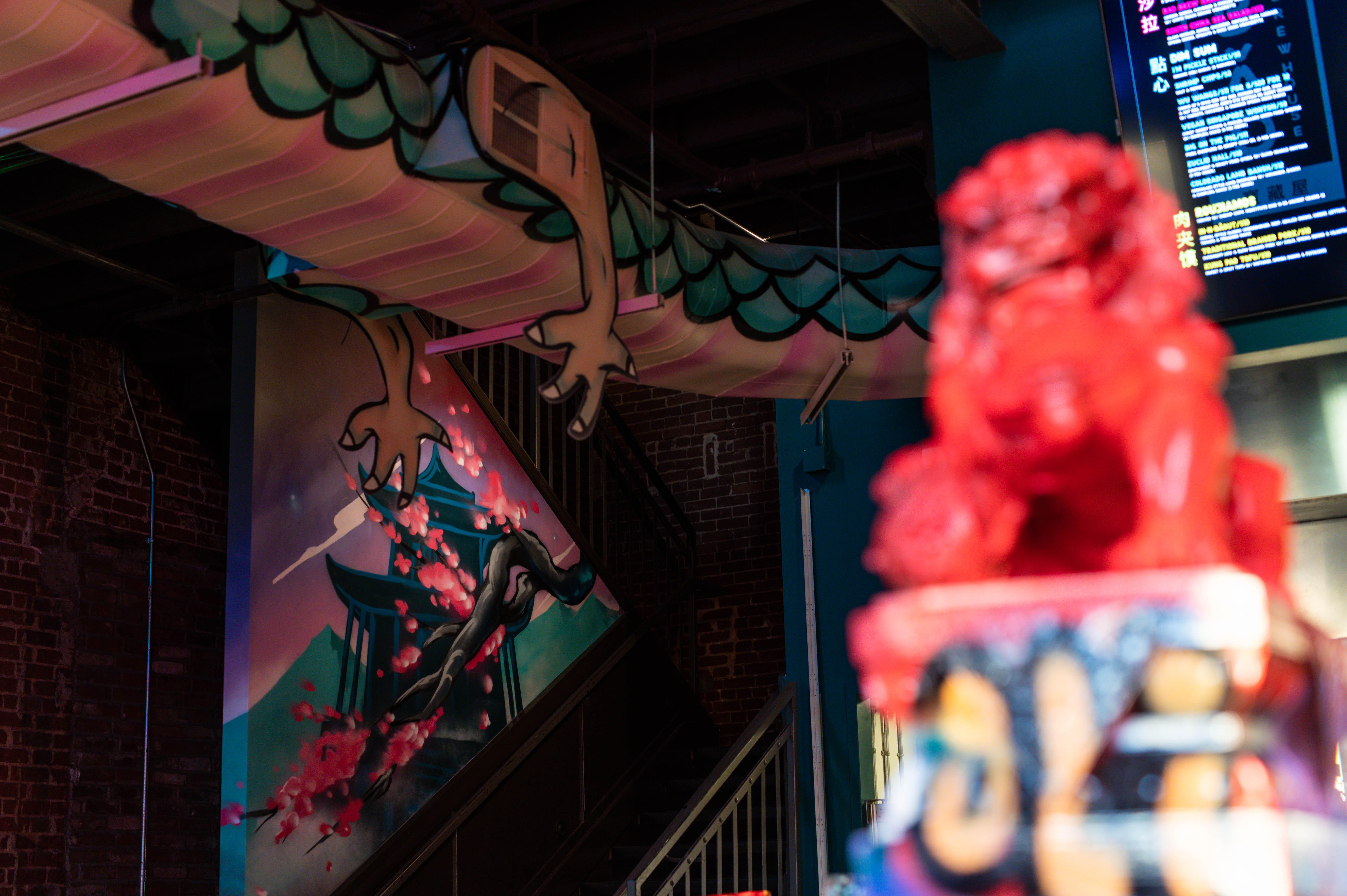 On November 27, Bao Brewhouse opened with a menu of to-go friendly Chinese-inspired snack fare. Replacing the recently-closed Euclid Hall, the project is still in the process of updating the iconic space — currently focusing on what will ultimately be just one menu of a multi-tiered on-site experience. The venerated room has been completely refurbished — murals by Mike Graves and Tuke One are interspersed with cheeky neon and Chinese iconography. The HVAC system that slithers across the whole room has been transformed into a giant dragon, the otherwise ferocious monster made delightful by the same playful touches that can be found peeking out from Grave’s omnipresent city-wide characters. Of all the new rooms that are currently stuck hibernating, Bao’s seems the readiest to burst — the vibrancy of the place palpably clawing the at doors from behind the temple-like entrance.