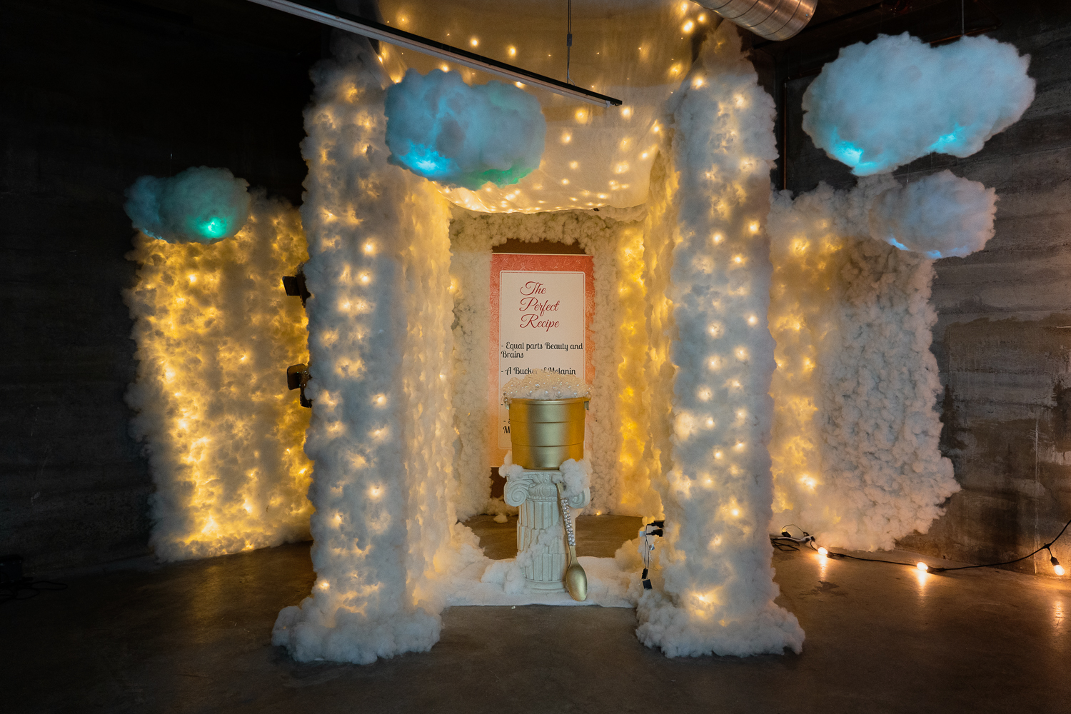 The museum is an interactive platform featuring the artwork of local Black women artists, including Billingsley herself. As a Denver-based creative, she had struggled in the past with traditional gallery-style art spaces. Wanting to create something more interactive and experience-based, her museum was born. Among her favorite pieces is “Grandma’s Kitchen,” one of her own where she recreated a nostalgic room from her childhood. “I can remember sitting in the chair in the kitchen and getting your hair done,” she said. “We didn’t have curling irons, just the pressing combs you heat on the stove….there were so many women that came into the exhibit that I didn’t even know and they’re like, ‘Oh my god, this looks like my grandma’s kitchen,’” said Billingsley.