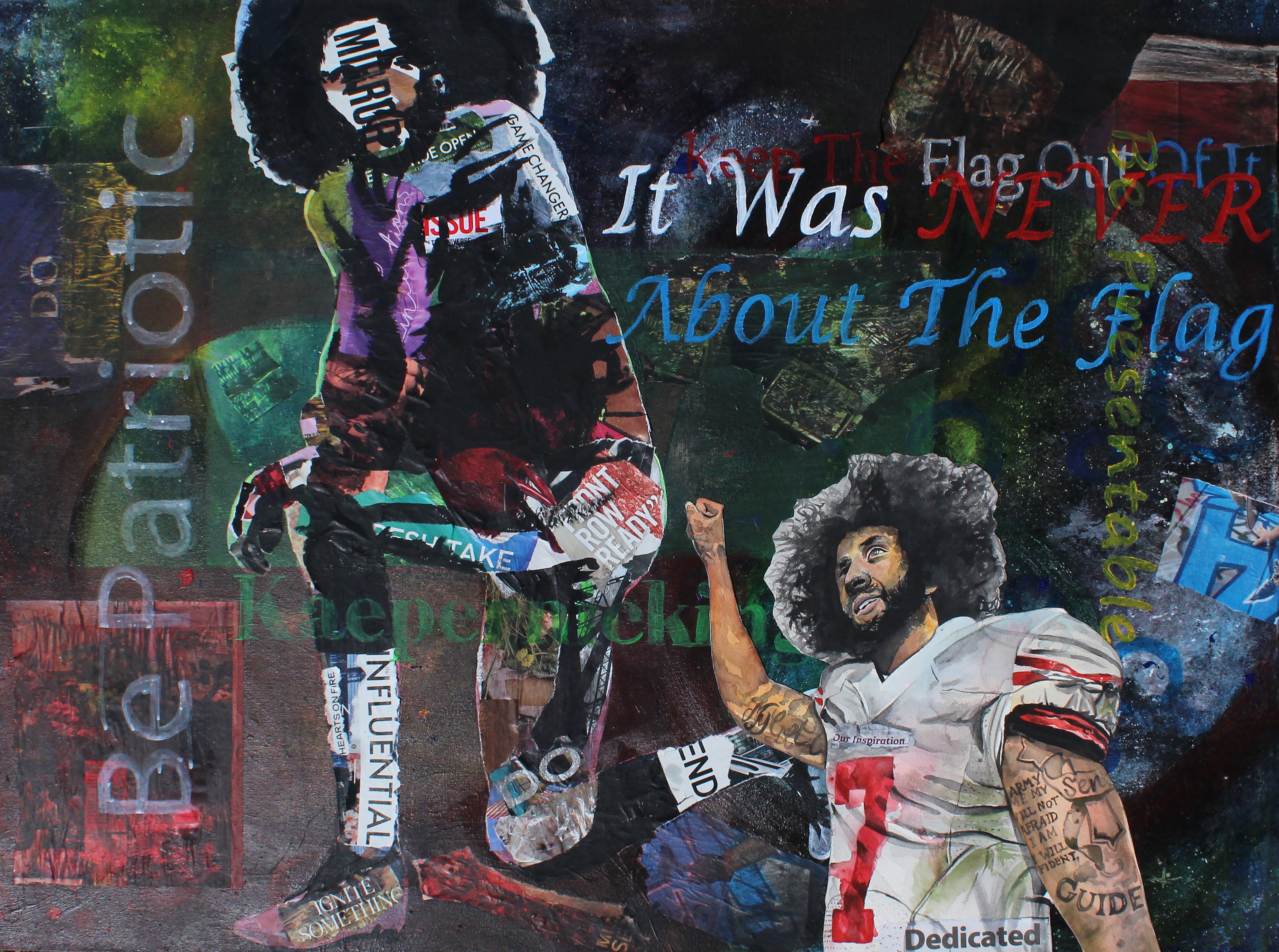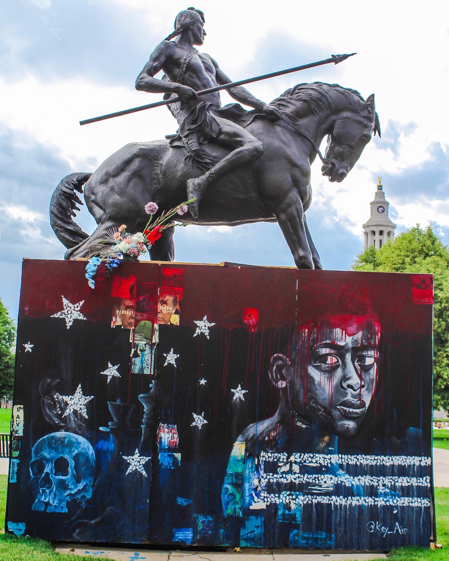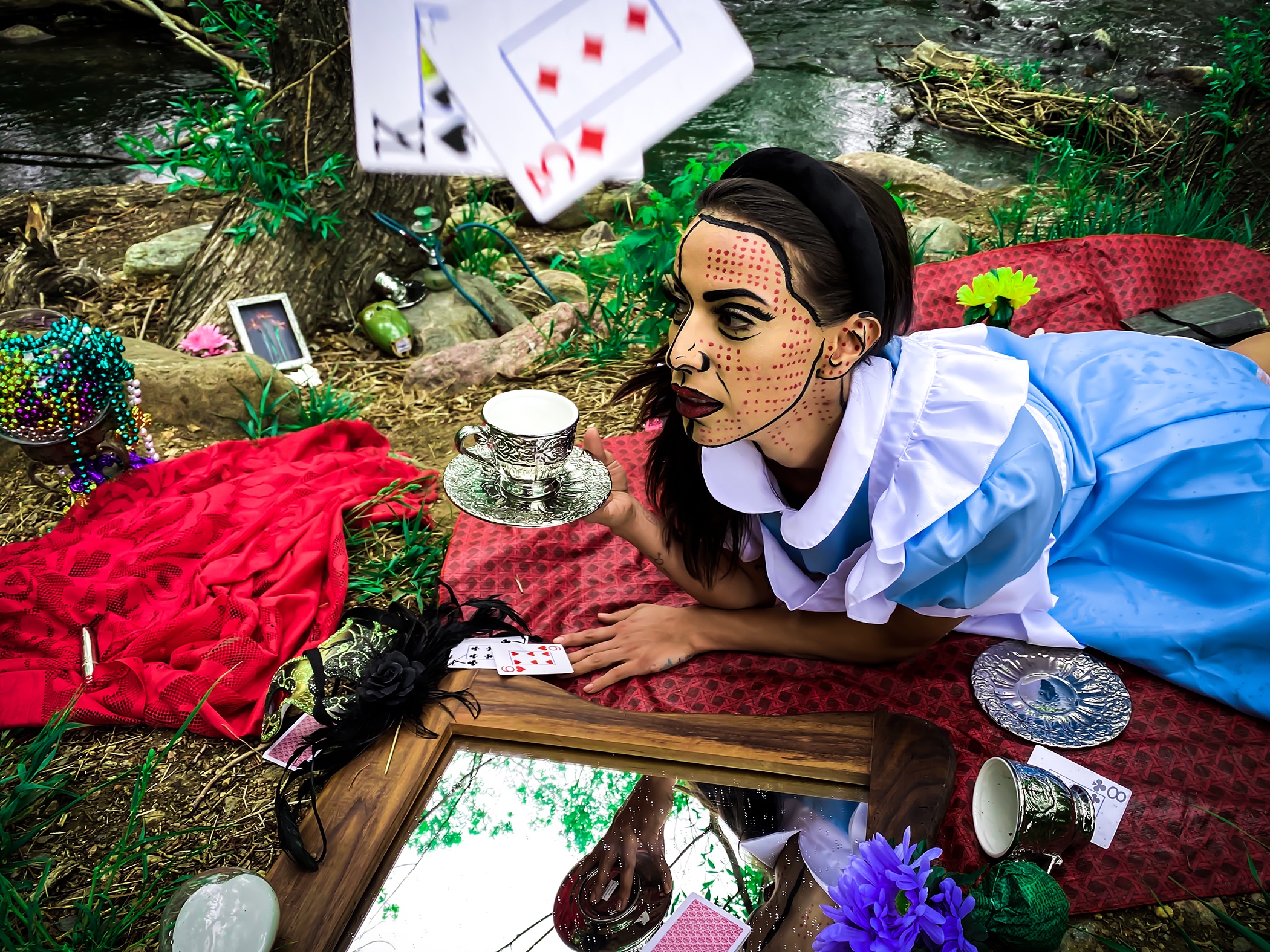 Dawkins seems more rooted in imagination. A creative jack of all trades, he began his artistic journey as a kid, when he would trace cartoon characters at his mom’s nail salon in Michigan. Since graduating from Mississippi State with a fine arts degree, his style has continued to evolve — with a mixed-media approach involving body painting and custom clothing as well as watercolor, acrylics, oil and cut paper all being applied to murals and canvases. (His work will be on display at the B.L.A.C. Gallery presented by IRL Art in RiNo through March 28.)