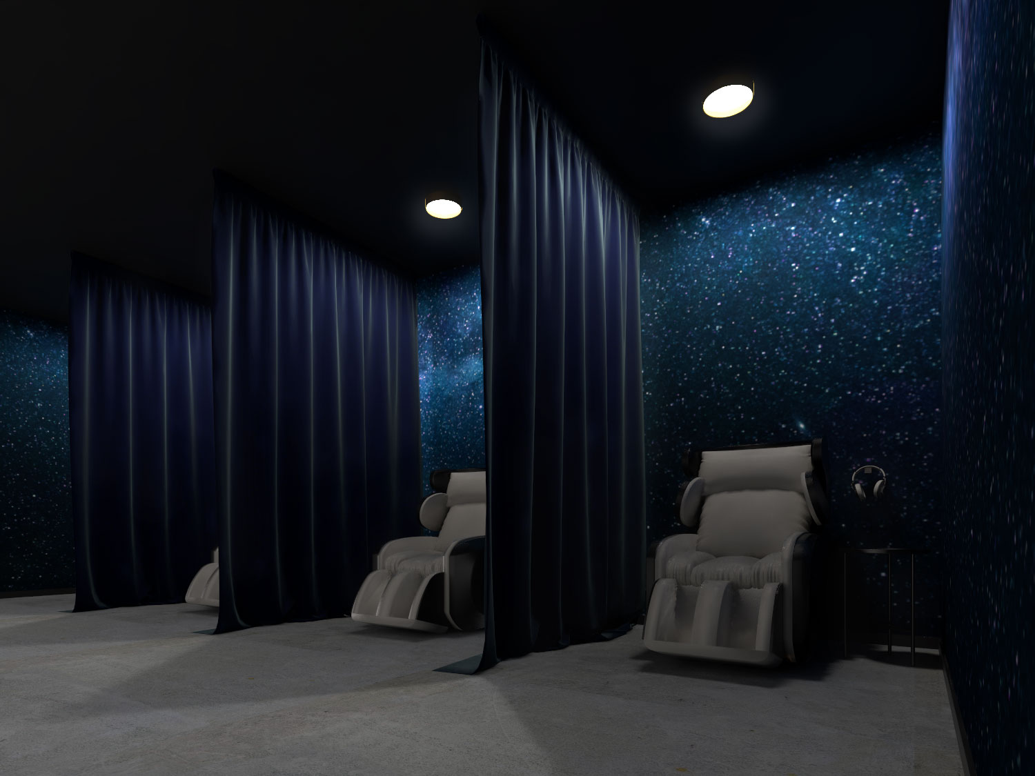 While the main services certainly benefit from the merit of novelty, nothing about the place rings of a gimmick. Least of all, the supplemental Zero Gravity Massage ($20 for 15 minutes, $30 for 30 minutes) — which involves space-age massage chairs complete with an appropriately intergalactic room aesthetic. These are not to be missed and can be enjoyed with or without beer therapy access.