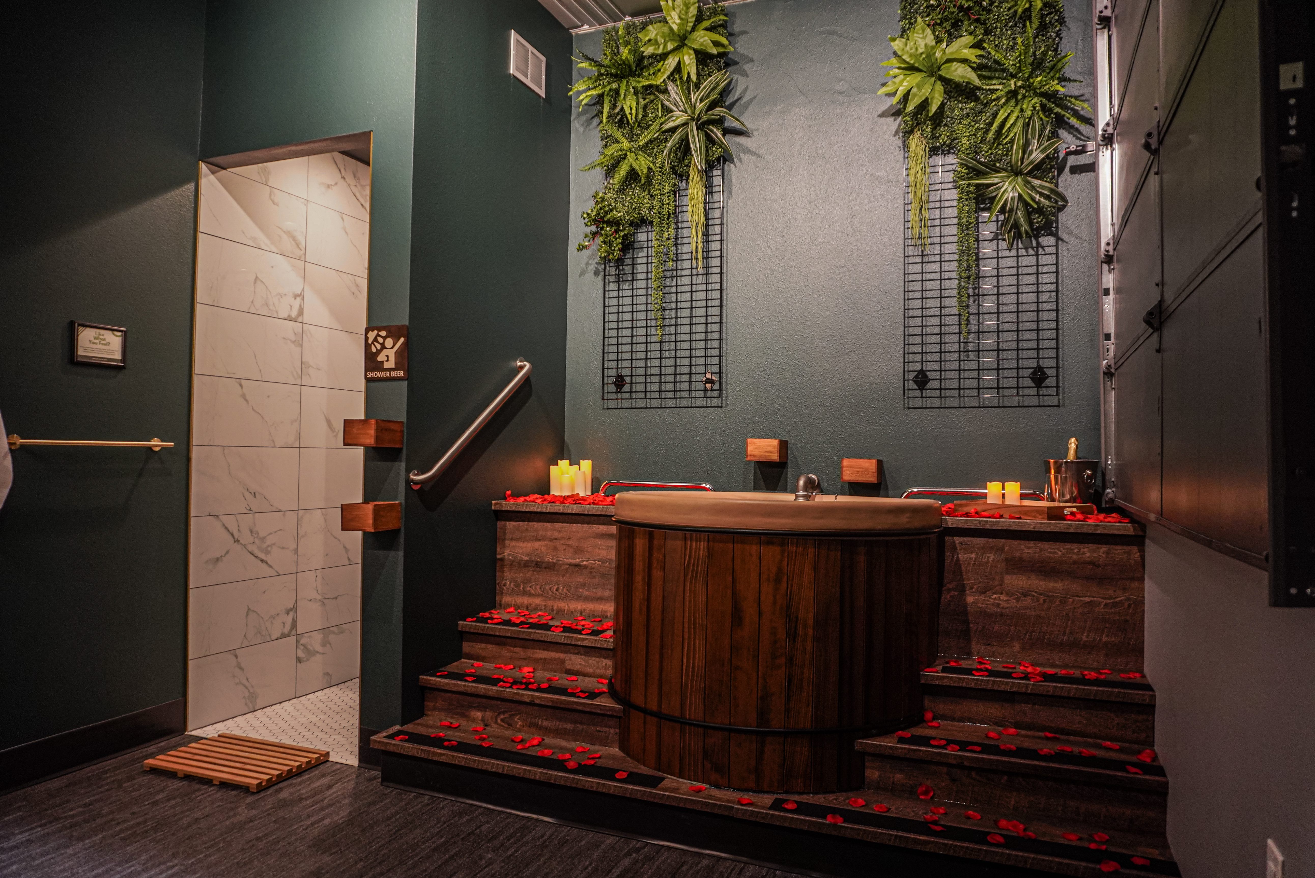 The facilities themselves feature four rooms — each complete with an infrared sauna, soaking tub and shower packed with proprietary Snug Cosmetics products, beer-infused shampoo, conditioner and body wash. The taproom is self-serve, the RFID-powered taps pouring beer from the local brewery of the month — Ratio Beerworks in March, with Denver Beer Co coming in April. A custom fragrance — designed by French — permeates the main room, the founders noting the vivid connection between scent and memory. Garage doors connect each pair of rooms, allowing larger parties to enjoy a conjoined space. Several packages are available, including the date night ($219) — which ramps up the experience with Temper Chocolates, flower petals and an utterly luxurious bottle of Crémant D’Alsace.