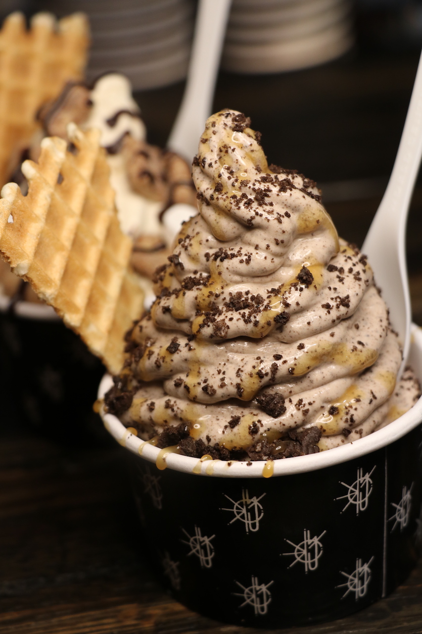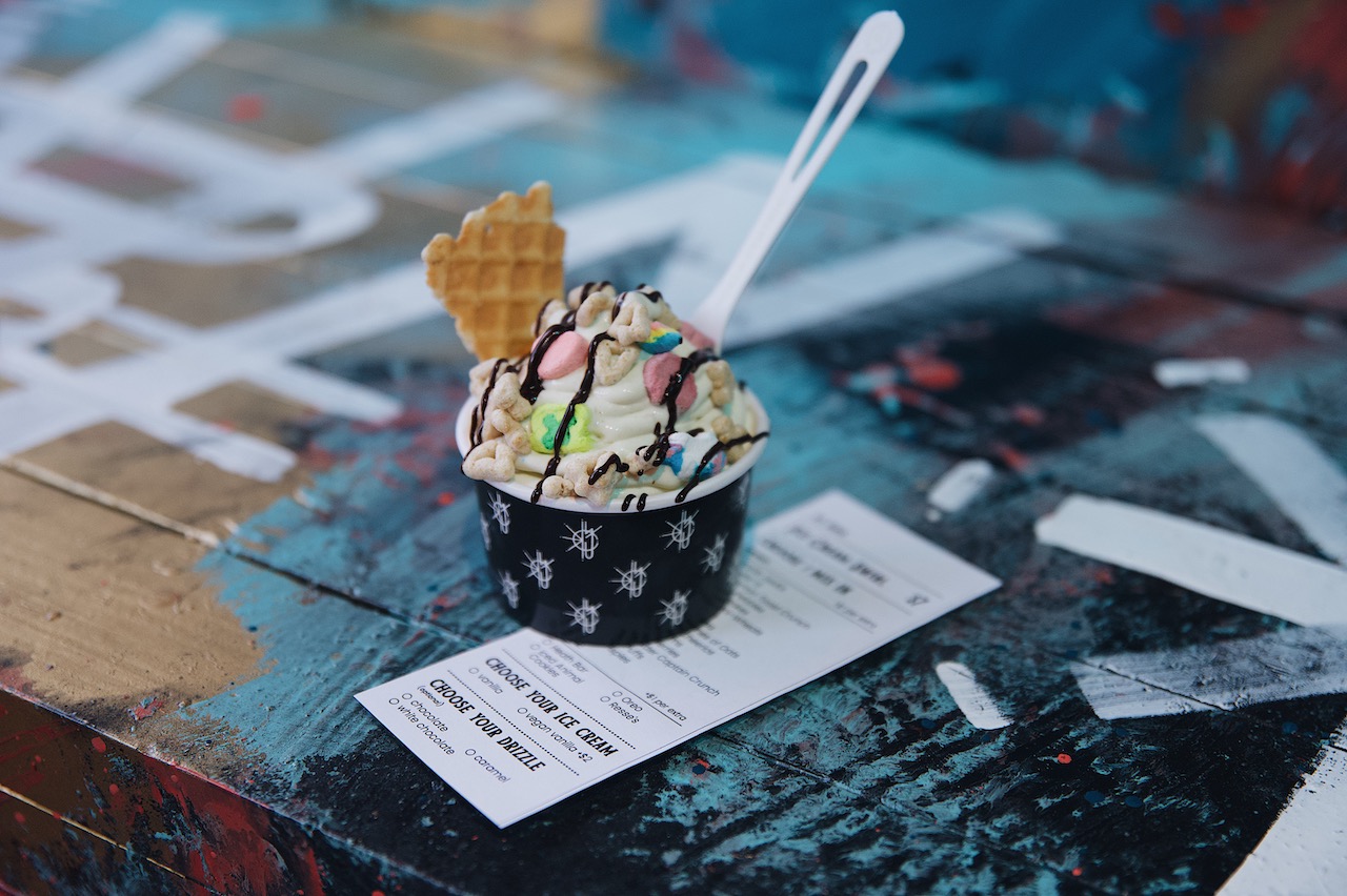 A single cup, including one mix in and one drizzle, costs $7, while their vegan alternative is closer to $9. It’s closed on Monday and Tuesday but starting Wednesday the machine swirls from the early afternoon until 11 p.m and 12 a.m. on the weekend. It is just enough time to pick a combination. With all their unique options, indecision can run high.