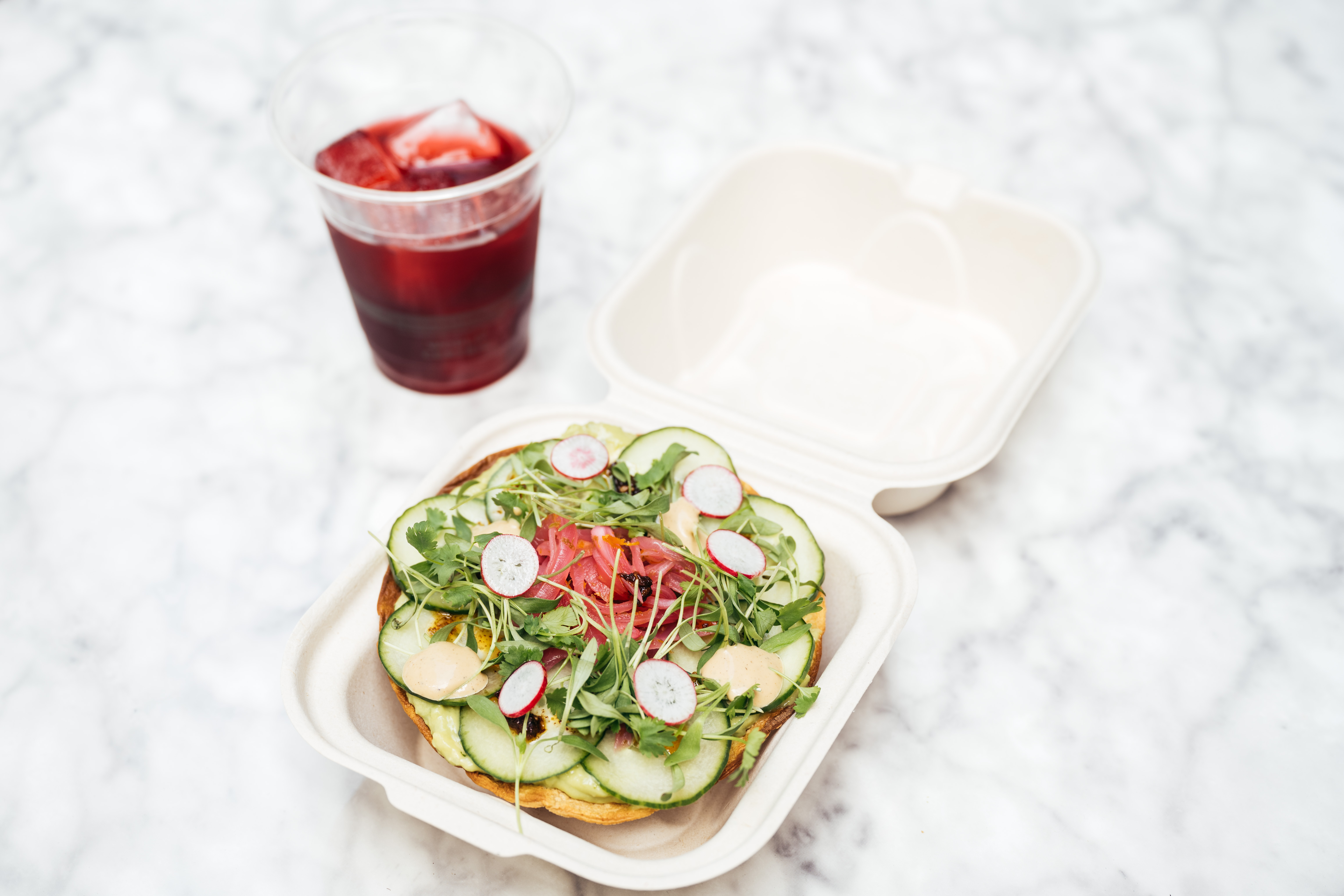 Bruto and BOH share a kitchen. All 14 staff members cross-train at both. Bruto was developed more deliberately — with a loose but well-thought-out plan starting to take shape after de Leon took over in November 2020. BOH was a bit more haphazard, coming into focus by necessity later that month after ie hospitality‘s marketing and events coordinator Leigh Barnholt recommended that the team activate the back counter after Run For the Roses returned downstairs. “It got us through the second lockdown,” remembered de Leon. Both have run on serendipity.