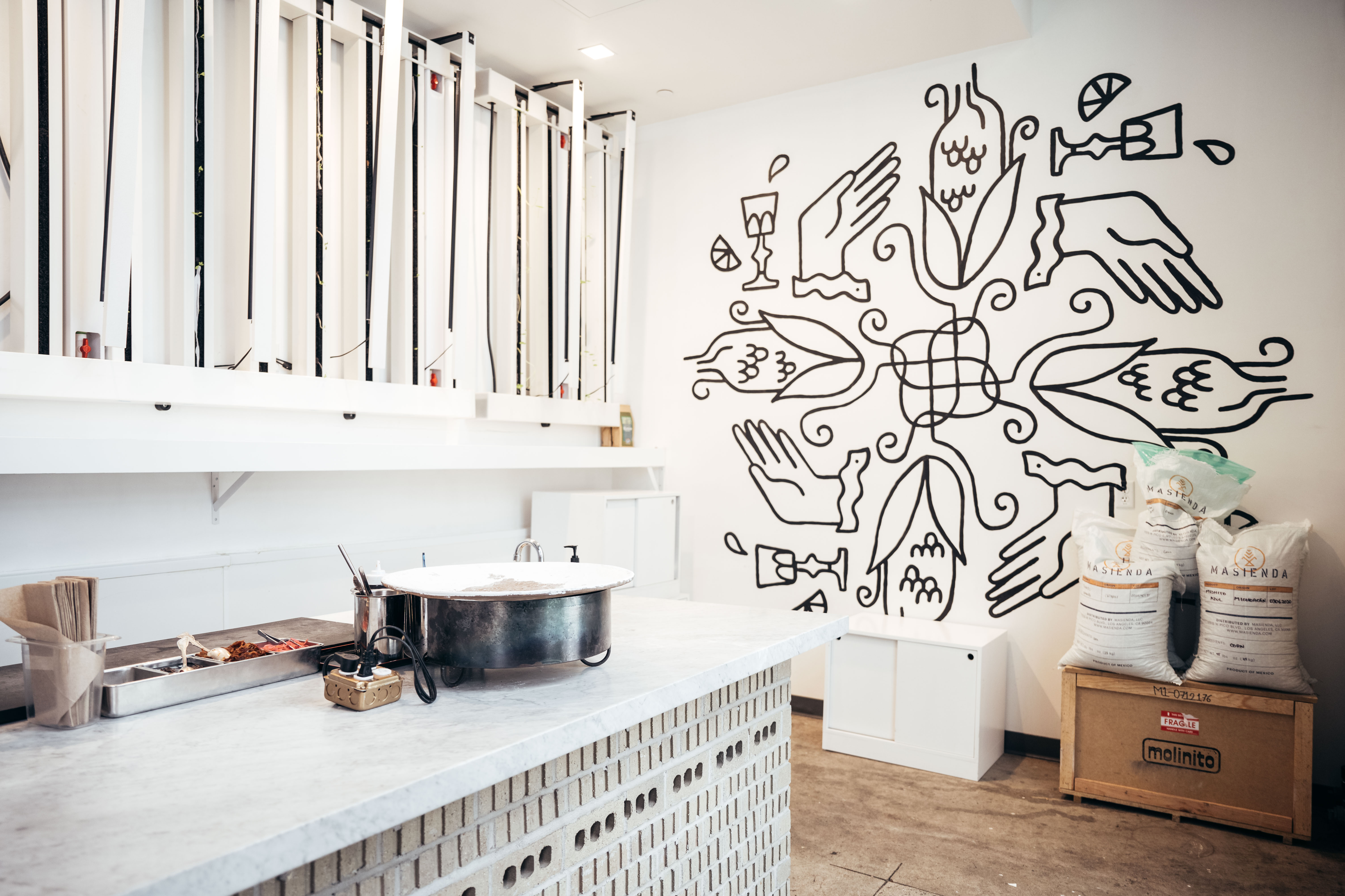 This is where the crude and raw comes in. At the core, de Leon says the whole operation revolves around grain, fermentation and chiles. Local flour has been joined by masa, with everything being milled onsite out of corn coming from Oaxaca and Mexico State. Every single tortilla at Bruto is made from that masa, with plans to carry that over to BOH by the end of the month. Old masa is converted into tejuino, a sweet beverage that has all the unmistakable earthiness of its source. The kitchen runs a 99% compostable program with half of the materials going to compost and the other half going to projects, both fermentation and dehydration. Old materials have even been used to make a house-made Tajin. A “chili bible” with 16 different varieties of dried, otherwise intact chilis sourced by The Spice Guy sits prominently, visibly underpinning the whole affair.