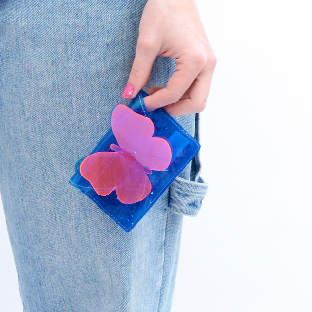“Most of my inspiration comes from nostalgia. However, the specific nostalgic inspiration behind my latest collection was my childhood toys in the late 1990s and early 2000s. Everything from Gameboys, Tamagotchi’s, water wigglers, neon bracelets and butterfly print on everything! I wanted to capture the nostalgia I feel towards these childhood things and transform it into a collection,” said Hodges.