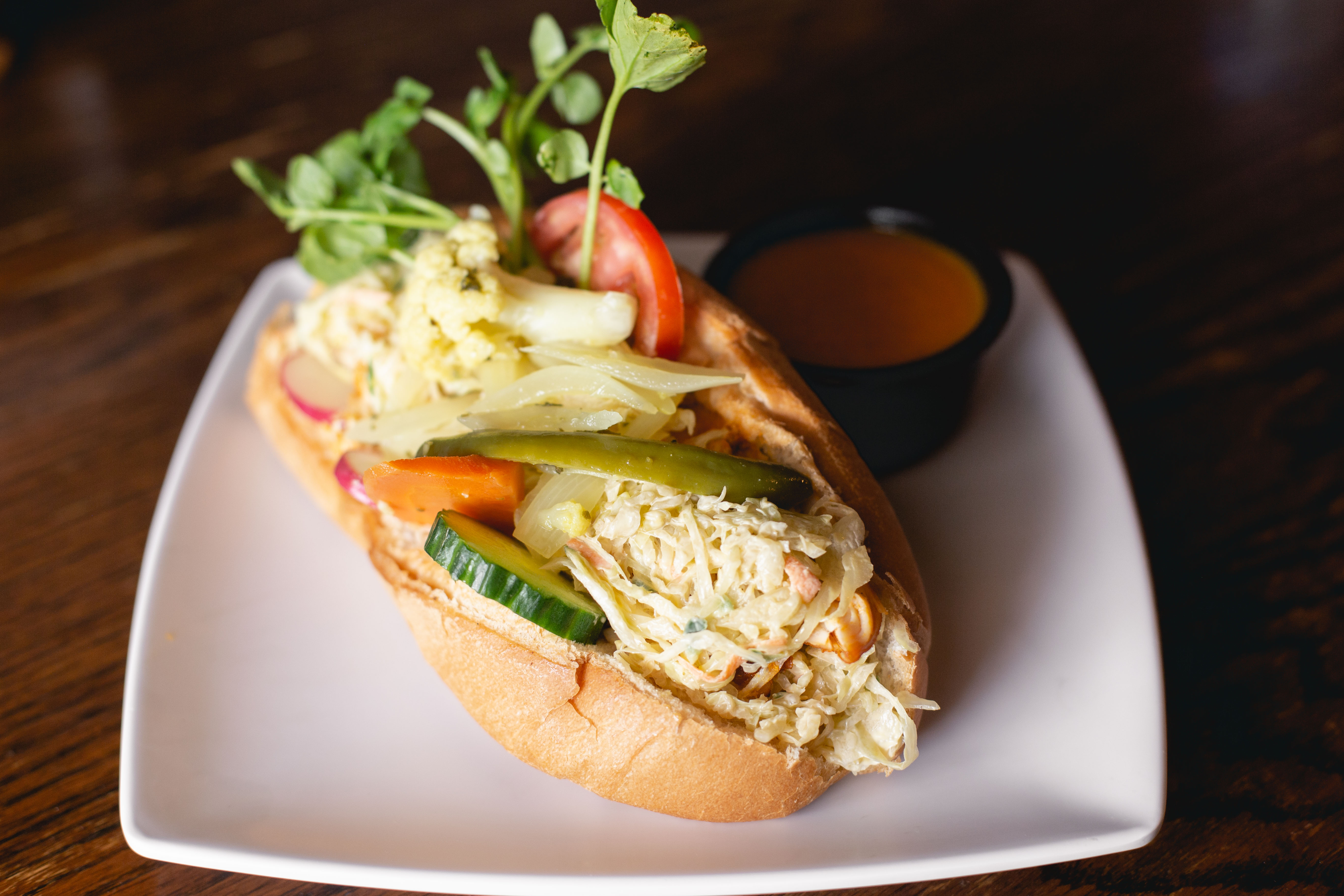 Though pupusas sit center stage, the rest of the menu makes a good case for the eminence of the supporting acts. The shredded chicken sandwich ($10.99) sees a sturdy French loaf stacked high with shredded chicken, slaw and what could only be described as a full floral arrangement of escabeche. It’s also the one item on the menu that’s not gluten-free. The Salvadoran enchiladas ($9.95) differ from their Mexican counterpart — instead topping a thick tortilla of house-fried corn flour with the same shredded chicken and a layer of beans, potato, carrots, chayote, pickled cabbage, boiled egg and feta cheese.