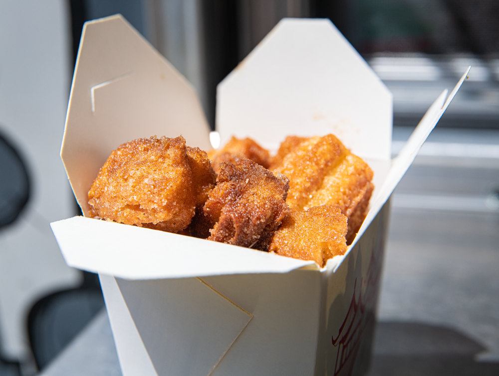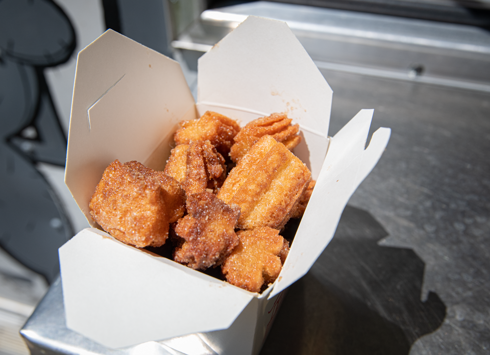 “We take our favorite things from home and try to replicate it or do it better, and do it all in one place,” said Josh. Tacos ($3.50) — with steak, adobada, shrimp, cauliflower or carnitas — are stacked high and topped with delicate micro cilantro. The surf and turf burrito ($13) is a massive undertaking, featuring carne asada, chorizo, avocado crema, fries and a not insubstantial portion of whole shrimp. It’s a juicy affair, with what’s sure to be a growing pile of drenched napkins providing a good sign that Carrera’s is indeed using the good stuff. Be sure to save room for the churro bites ($5) — a perfectly balanced rendition with a sprinkle of salt and house-made horchata anglaise. Or, for a pro move, come back for the weekend brunch service, where Carerra’s dispenses churro pancakes ($12) — which sees a stack of three topped with an almost intimidating pile of what is surely one of the city’s more decadent desserts.