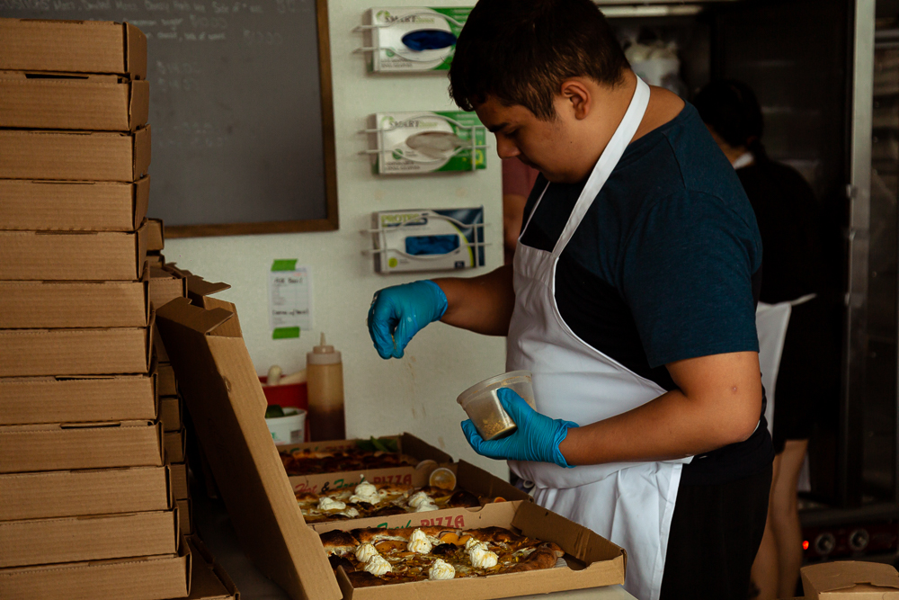With the new oven he can make upwards of 15 pizzas at a time and the quality is still excellent. “Obviously it’s not wood fire and it’s not going to be the exact same,” he admitted. “But the ingredients are the same, pizza dough is the same, everything is pretty much the same. It’s just…a little crispier.”