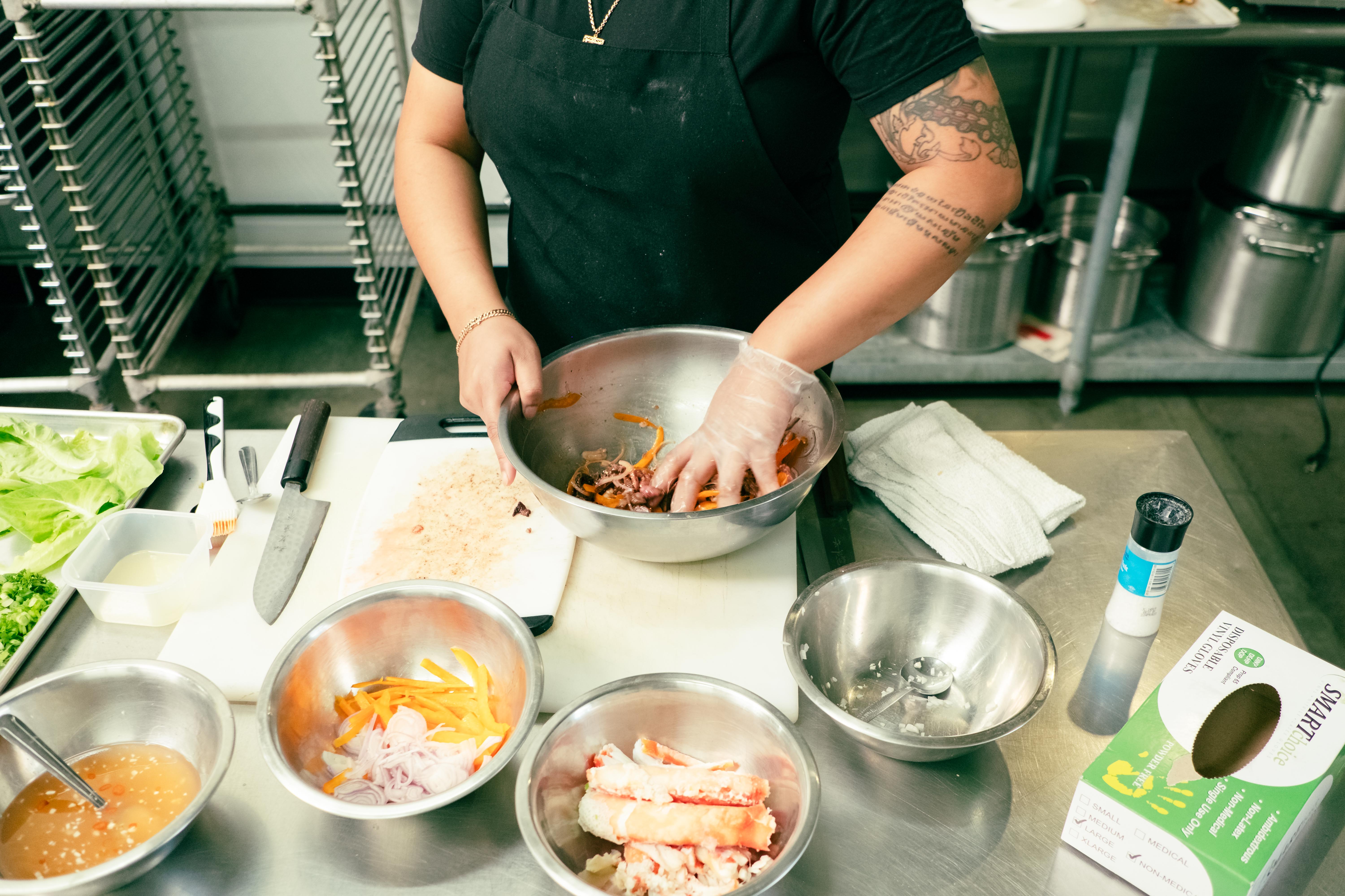 Son and Amon met close to three years ago while working together at a local restaurant. Realizing that they both had dreams of one day opening their own space, the duo started Riceboxx as a low-stakes way to address the lack of Filipino and Cambodian representation across the city’s dining scene. Son draws a certain amount of inspiration from a chip on her shoulder — she was the only one of her siblings to have been born in America. Her parents met in a Thai refugee camp after fleeing the Cambodian genocide and had three children before they relocated to the United States in 1993. Son pours a great deal of the pride she has in her heritage into each bite, maintaining certain classic elements while frequently updating the style to illustrate elements of her own identity. Amon’s approach is similarly rooted in exploring aspects of her family’s culinary traditions, having grown up surrounded by much of her extended family, all of whom immigrated to the states from the Philippines in the 1980s. While the dishes Riceboxx serves are certainly an homage, both Son and Amon take care to add plenty of their own spin.