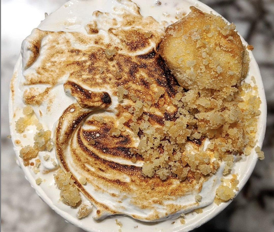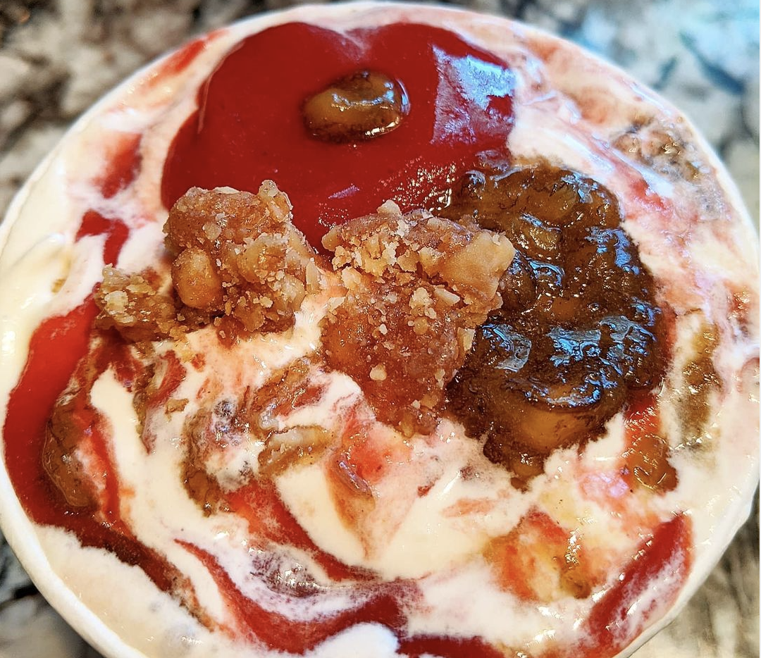 Back in June of 2020, Right released the first of his ever-changing flavors. With a name like Gwen Stefani, this pint was beyond what comes in the freezer section and it was bound to be a superstar that leaves people drooling over it. A vanilla base was hidden by twirls of homemade strawberry jam, candied walnuts with a chewy caramel coating and bananas brûléed with extra brown sugar to keep them sticky. Each topping bursts from the top and captivates followers with one look.