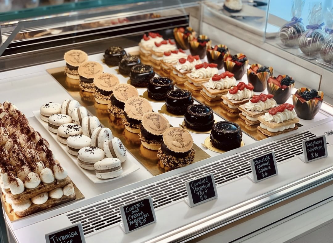 The Lowdown: Dean Barsness came to the gelato scene unconventionally after meeting the owner of Gelato & Co, a gelateria with multiple locations in Italy. An idea to bring this renowned gelato brand to the states connected the two. The number of places with fresh gelato is scarce in Colorado, making it an ideal location. Thus Barsness began building his sleek modern shop in Highlands Ranch. The fun accents decorating the polished room include drawings on the menu that change as quickly as the flavors do. They play around with American flavors like the cinnamon roll with a punch of cinnamon, and brownie batter, which tastes like sneaking a bite before they bake in the oven. However, with roots in Italy, Gelato & CO can’t stray too far from the flavors that built the shop like tiramisu and biscotti. But with innovation from the pastry team, pineapple and mint sorbet have become difficult to give up as well. A cup is what most come for, but after exploring the display case, customers often leave with more. The gelateria also tempts with shining macarons, flaky napoleon stacks and tarts. For more gelato there are cakes. Each switches off between fudge or fruity fillings and smooth gelato atop a base layer of freshly baked cake. The are also cake pops, which are perfect for a smaller celebration.