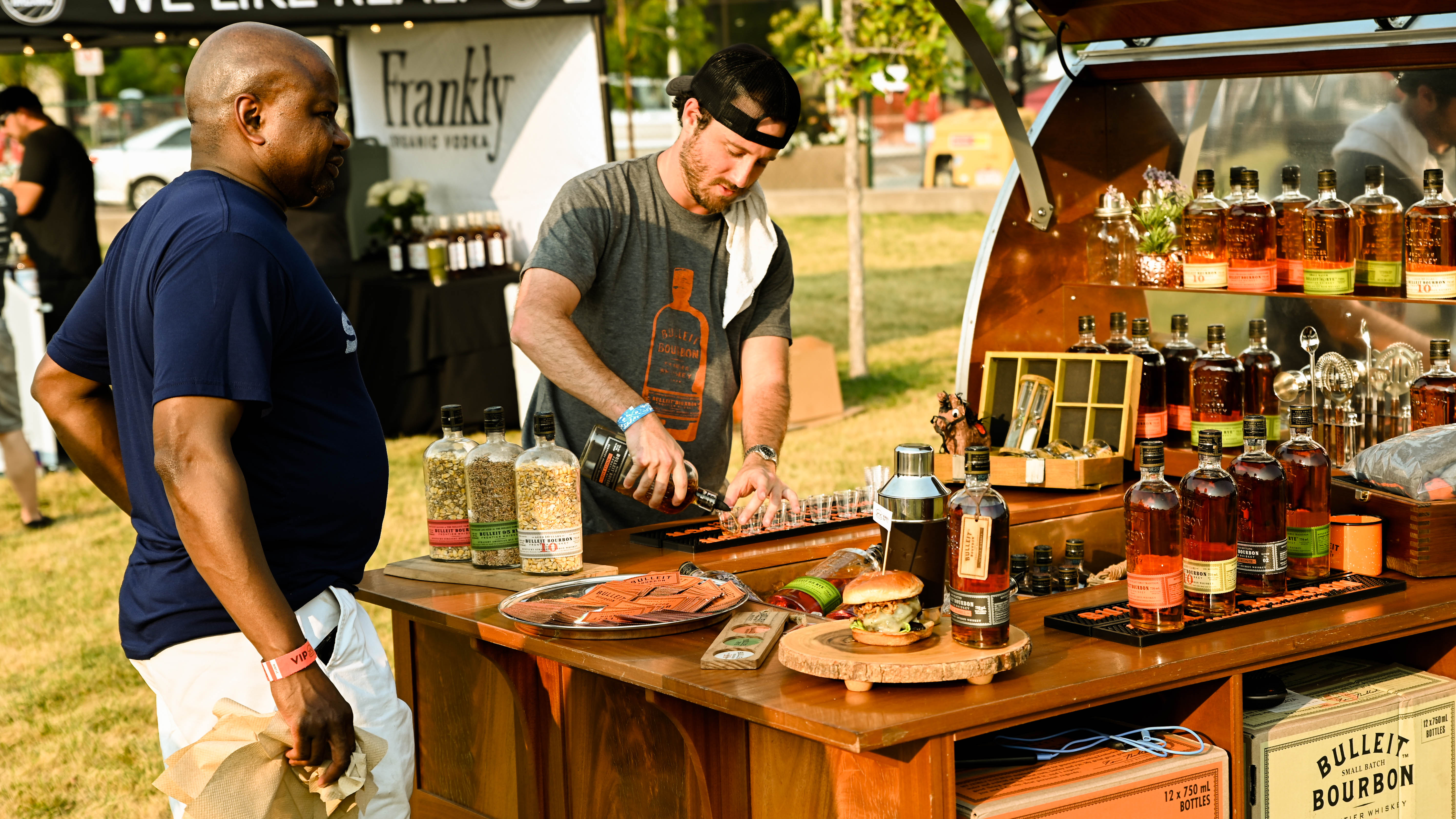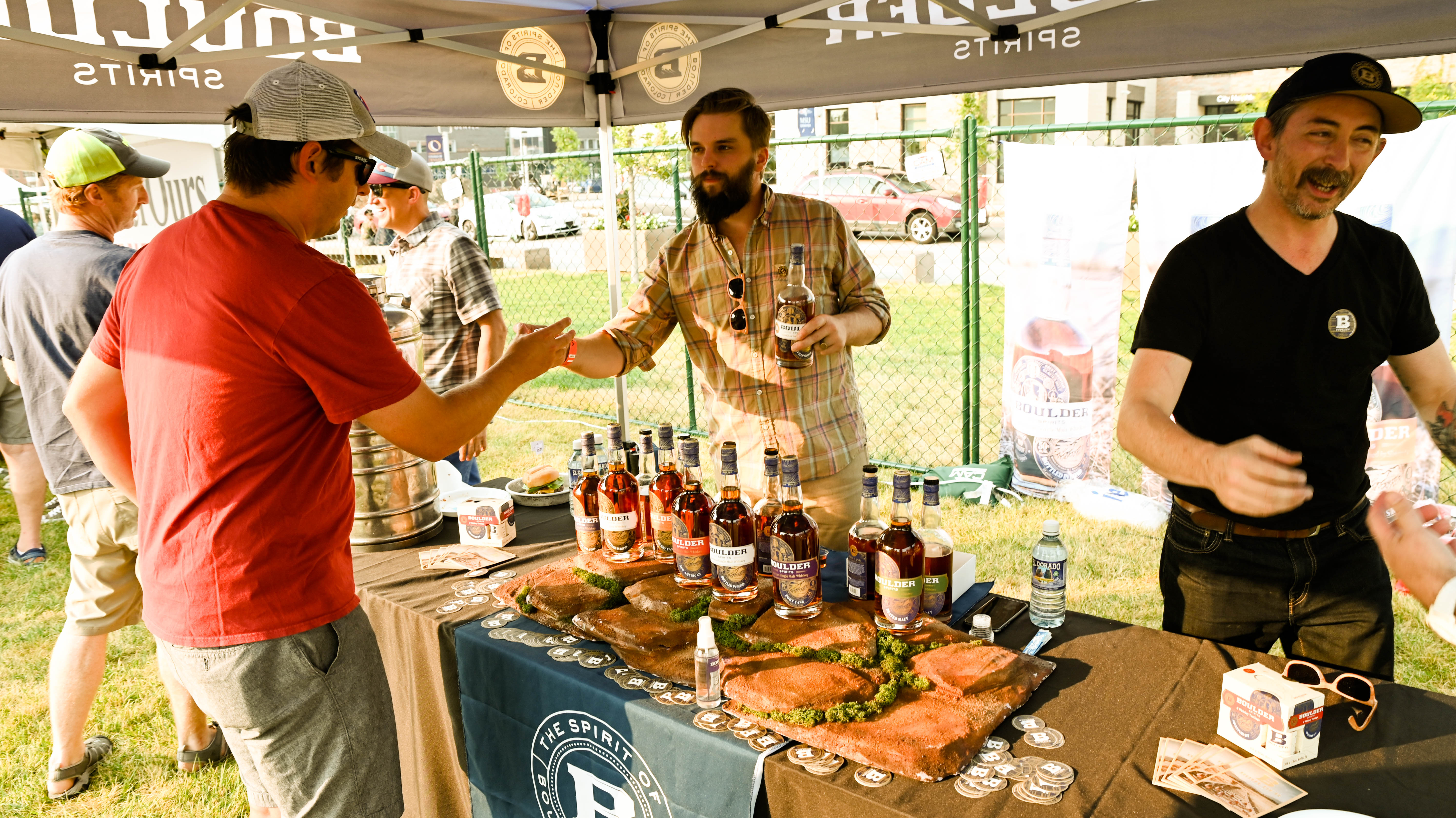 There were more than a few familiar faces — featuring past winners The Cherry Cricket, Stoic and Genuine, Stanley Beer Hall and Highland Tap and Burger — as well as some fresh contenders — including Death and Co, Kuma’s Corner and Etc Eatery. Beyond that, 5280 Burger Bar, Bob’s Atomic Burgers, Briar Common Brewery, Hickory and Ash, Humboldt Kitchen and Bar, Illegal Burger, Snarfburger, The Castle Bar and Grill and The Original all brought competition-ready fare, churned out rapidly to meet the constant demand. Most stands served their burgers sliced into quarters, with a few sliders managing to make the task of eating everything all but impossible. To wash it all down, Cancion Tequila provided a tasting paired with cheese, chocolate and mango, Bulleit Bourbon shared standard, aged and exclusive varieties, Frankly Organic Vodka made cocktails and Boulder Spirits presented its whole line of locally-produced whiskeys. Great Divide was also onsite, sharing a central tent with Little Man Icecream for an essential pitstop for anyone who needed to punctuate what was otherwise a strictly beef affair.