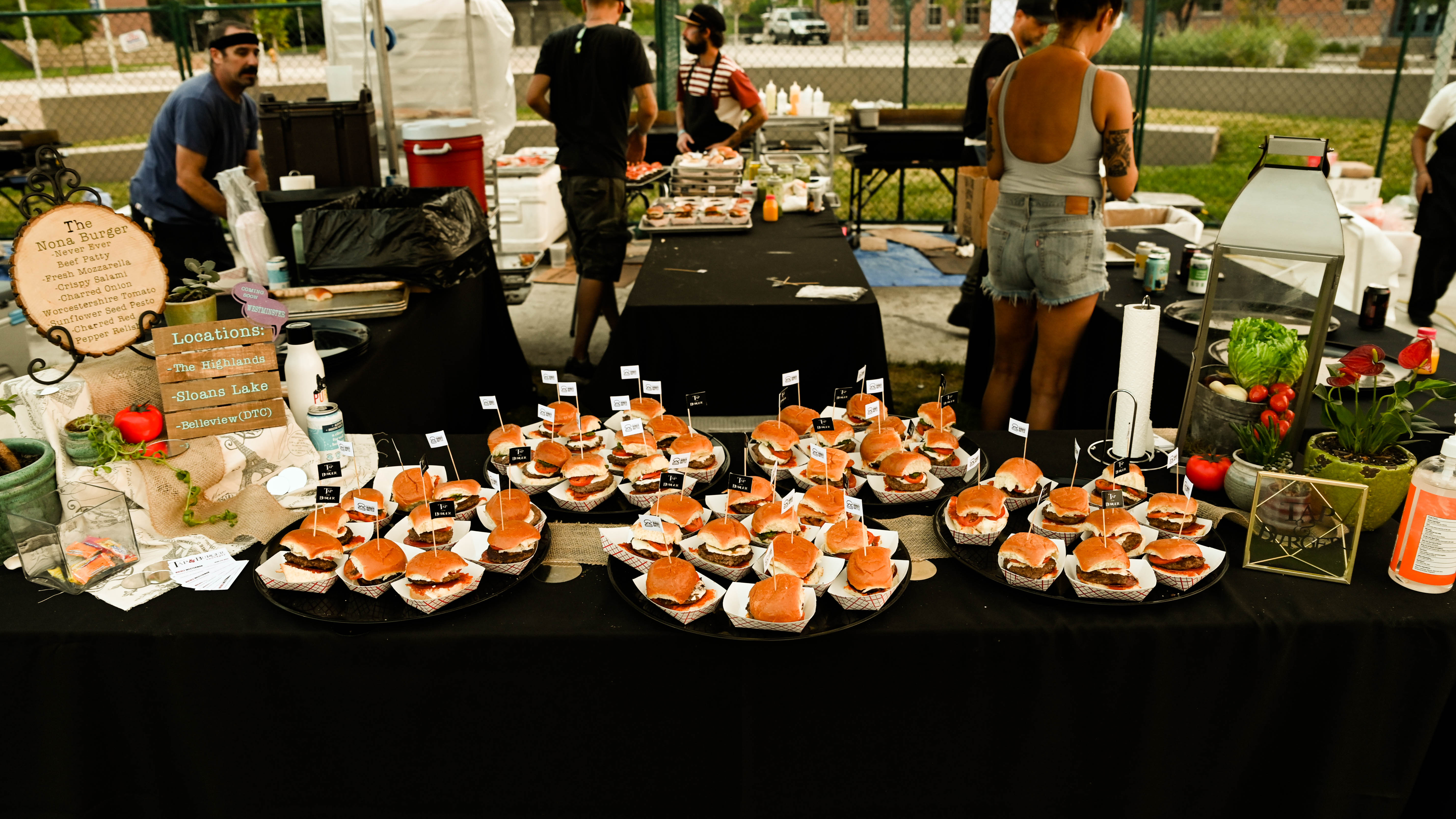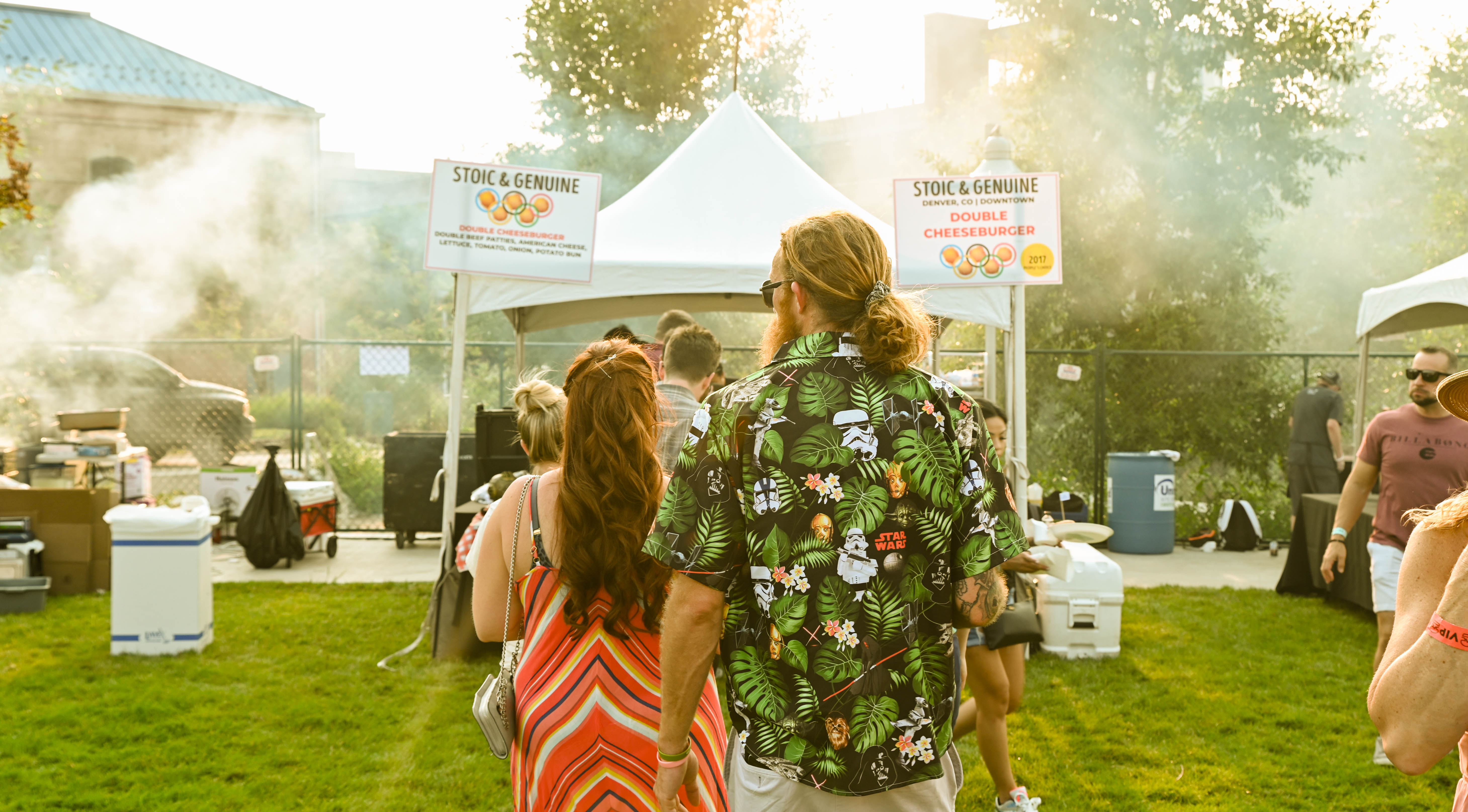 On Thursday, August 5, The Denver Burger Battle returned for its tenth iteration. Once again — after a year-long hiatus — the Tivoli Quad was filled with smiling throngs of hungry burger enthusiasts. The array, 1,500 strong, meandered through 16 booths, each representing what is arguably some of the finest talents in the city. More than a few folks were dressed in theme, though everyone was clearly on the same page, whether fitted to the nines or more casually clad. This was a crowd ready to feast, drink and meander through the smoke that descended both from on high and from the many grills that encircled the field.