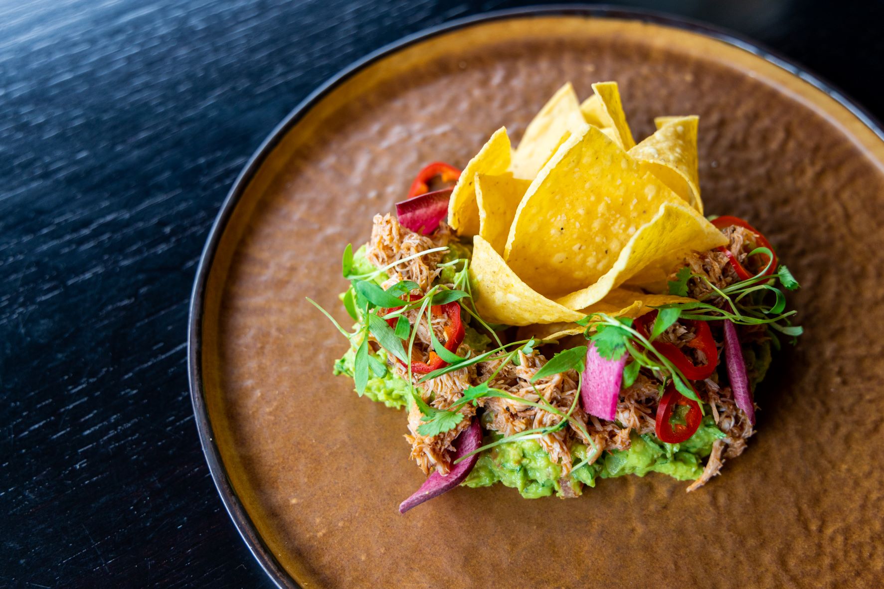 Folks can begin their night with a bowl of Tamayo’s extra crisp homemade chips — that undoubtedly shatter because of their thinness, yet have the strength to hold their anniversary loaded guacamole. The Crab Guacamole ($15) ditches crispy bacon bits for lump crab delicately scattered on top. The chili adds slight heat and smokiness to the traditionally sweet and salty seafood. Avocado toast with crab just found it’s Mexican rendition on Tamayo’s menu.