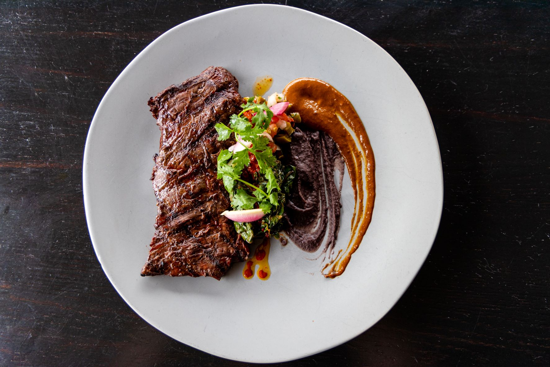 The more rustic Carnitas ($24) get refined in this menu. A blue corn tortilla provides the base, but instead of being a taco plate, the shredded pork is the focal point. The mindful plating highlights the delicacy that comes from long hours of braising pork.
