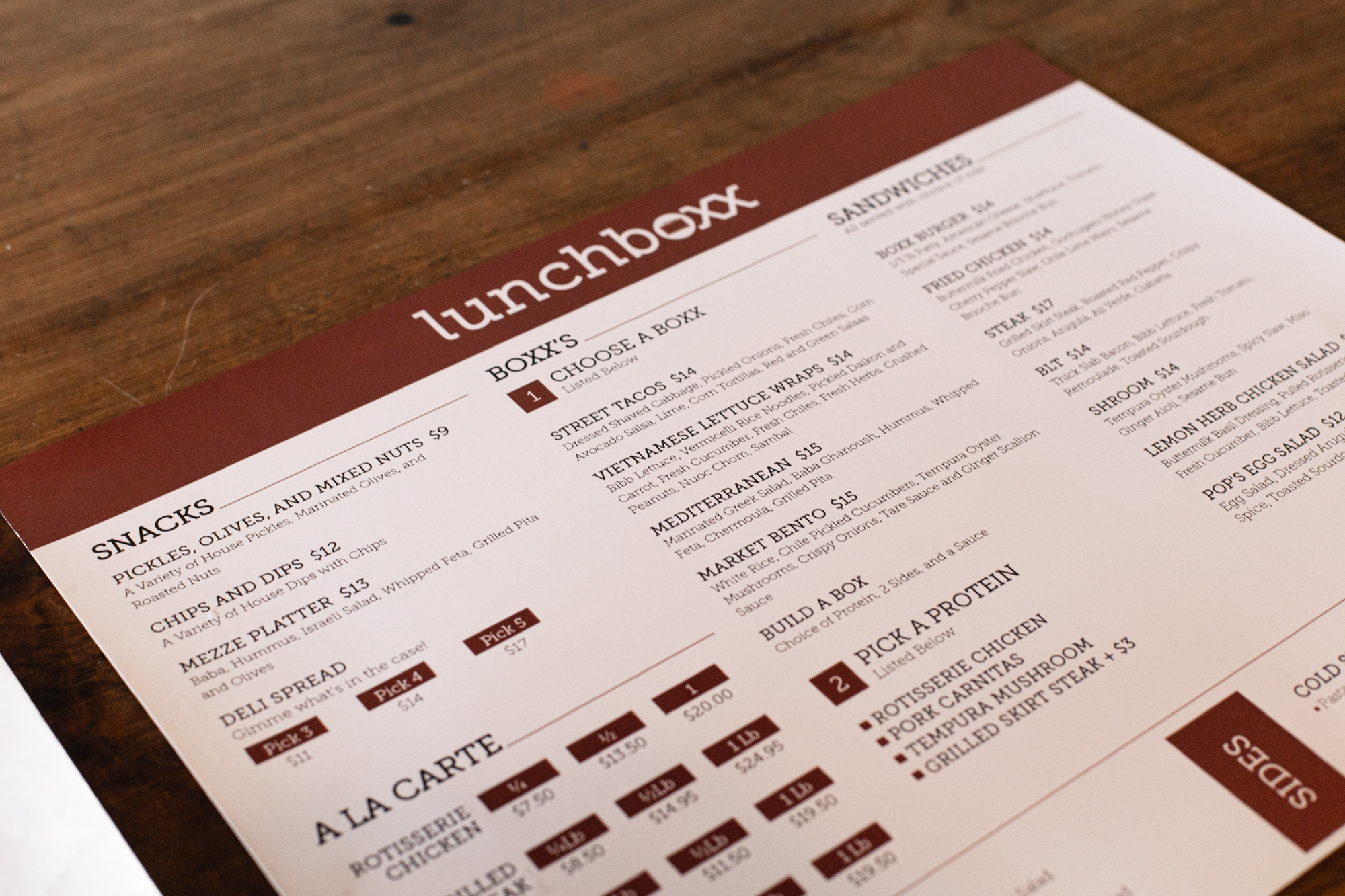 The menu at Lunchboxx does indeed provide a lesson in the kind of efficiency that makes ordering anything from a quick lunch to a full spread for a family of six or more a breeze. Boxx’s — including street tacos ($14), Vietnamese lettuce wraps ($14) and what may be the piece de resistance, the market bento ($15) — can all be ordered with proteins that include perfectly-crisped rotisserie chicken, pork carnitas, tempura mushrooms or grilled skirt steak. Each of the proteins can also be ordered by fractions of a pound, with a full list of both hot and cold sides making the menu perfect for take-out dinners both large and small.