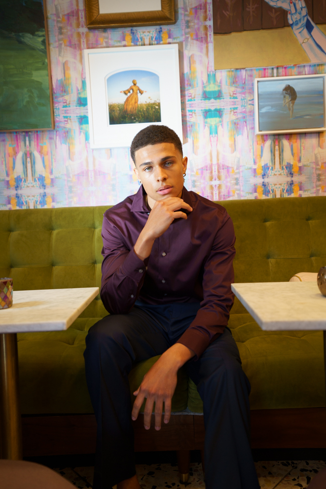 Menswear this holiday season is all about dressing up your seasonal favorites. Our style approach on models Kian Lewis and Bryce Kellum welcomes tailored silhouettes and complementary colors. We suggest pairing a sleek pair of earth-toned trousers with a tailored velvet jacket in a louder hue to upgrade your fit. To further incorporate NYE elegance into your look, add a printed bow-tie or bold belt for a proper finishing touch.