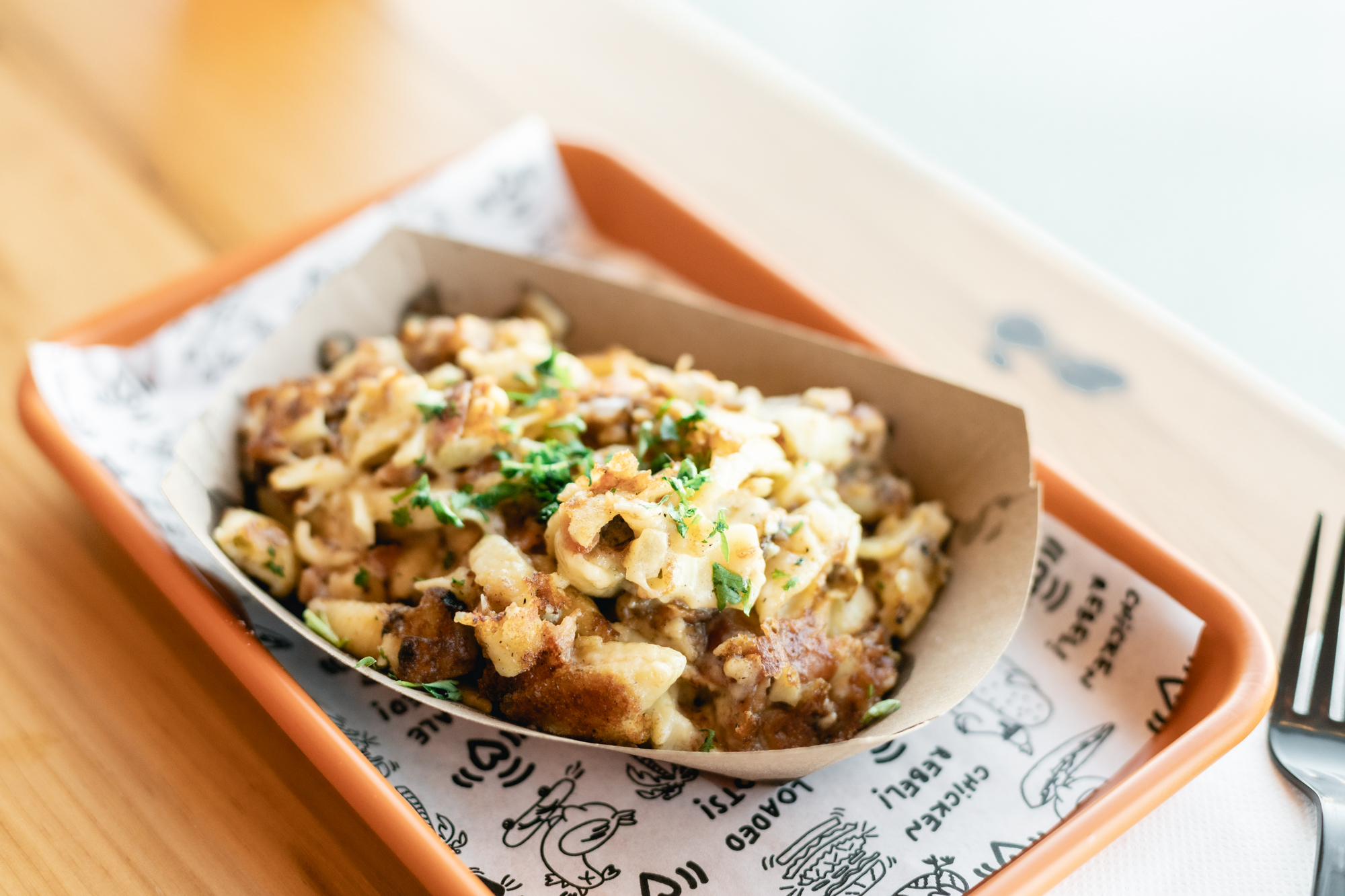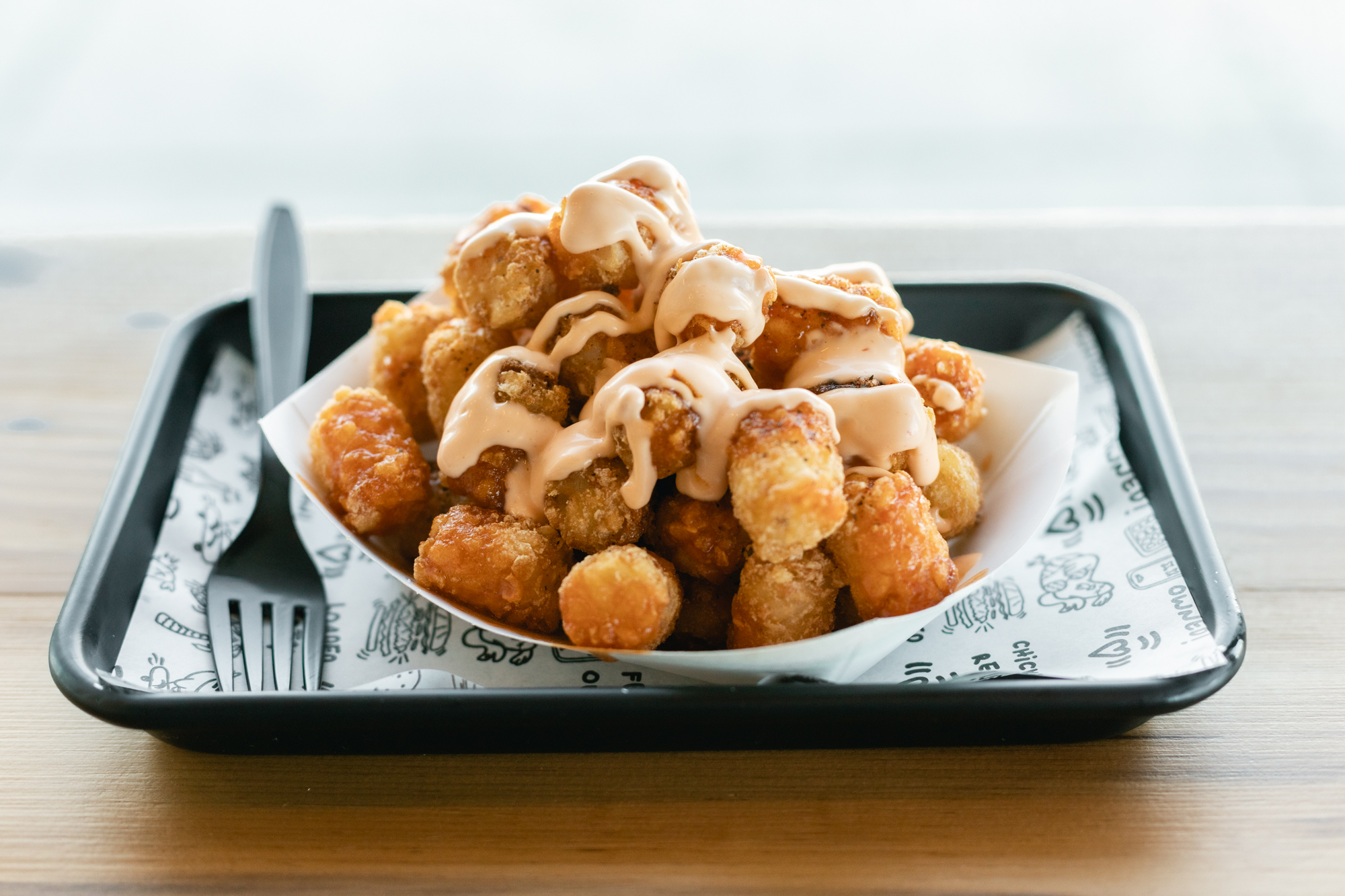 The menu is largely a replica of the original, with just a few extra items popping up to satiate the suburban rush. “More so than adding items, we kind of streamlined,” said Lovett, noting that some dishes had actually been removed from the original location as the business gears up for further growth. For the uninitiated, The Buffalo ($9.50) — with blue cheese celery slaw and buffalo sauce — is a good place to start, though a more seasoned vet might go for the San Diego ($10.50) — an homage to Lovett’s last address with bacon, lettuce, American cheese and Rebel Sauce. Do not leave without a side of one of the tots, with the honey hot tots ($6.25) probably bringing the most zest.