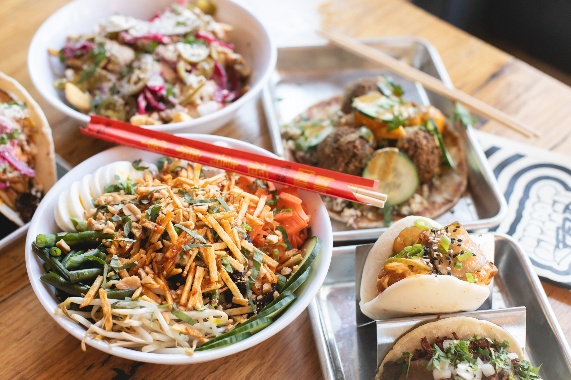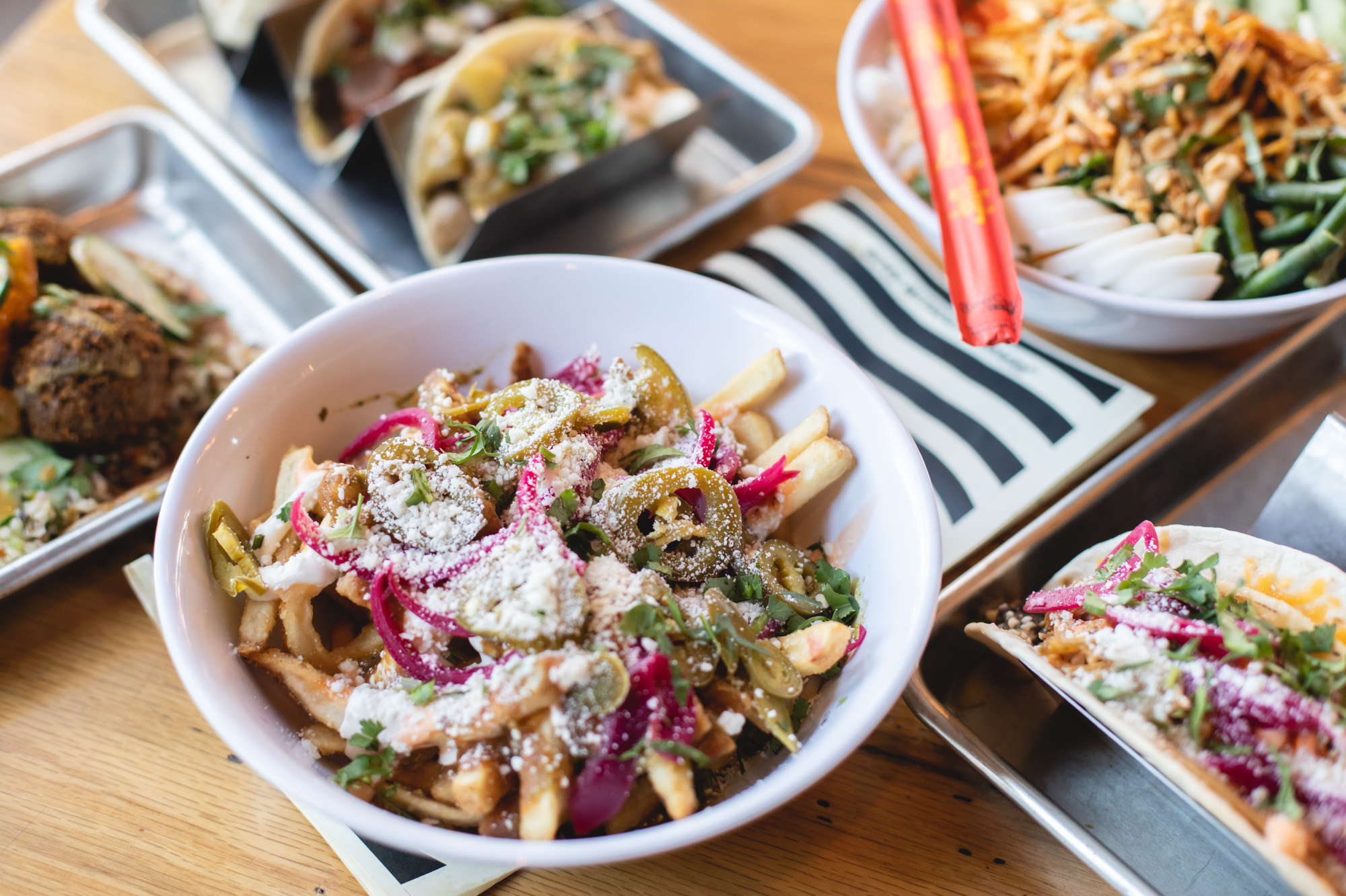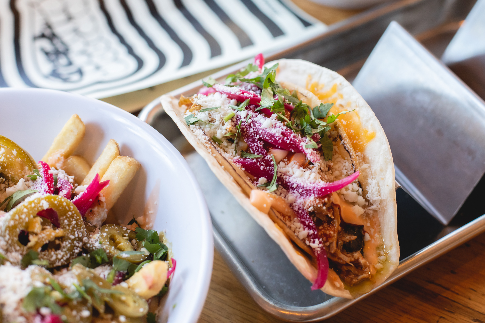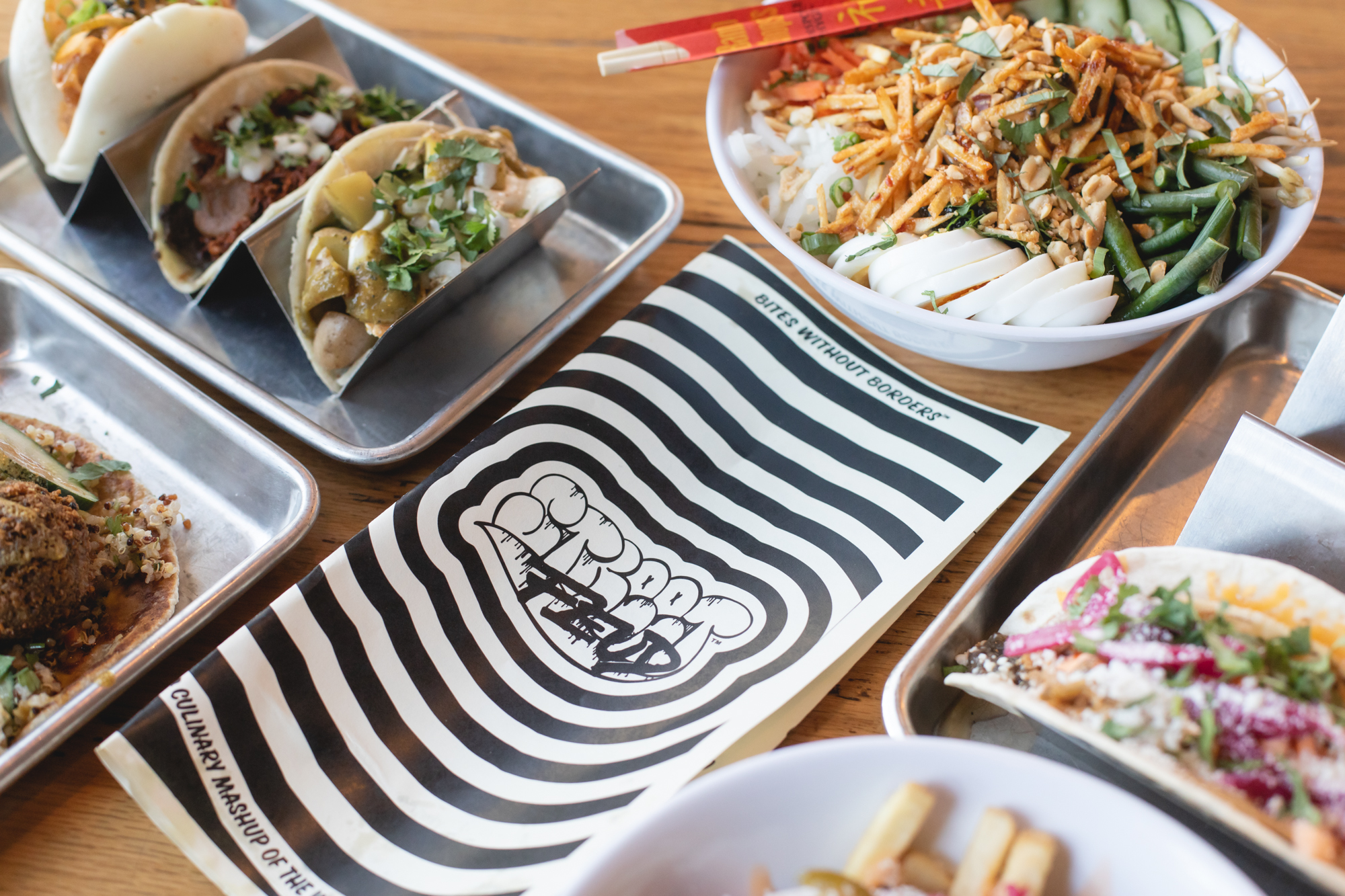 On December 22 of last year, Street Feud opened in its first standalone location on East Colfax. Following a stint at Avanti Denver — that lasted from August 2019 through March 2020 — the concept has finally reemerged in a fully decked-out refurbishing of what was formerly Solera Restaurant and Wine Bar. Amidst boomboxes, Nike Dunks and a wall-to-wall overlay of iconic, decade-spanning memorabilia, chef Merlin Verrier has been crafting an international amalgam of street fare fit for the discerning palate. This is a place to snack well and feast fancifully, with tacos, wraps, buns, fries, bowls and beverages arriving from every corner of the globe. This is corner-stand food, all presented with high technique and a clear penchant for cheer.
