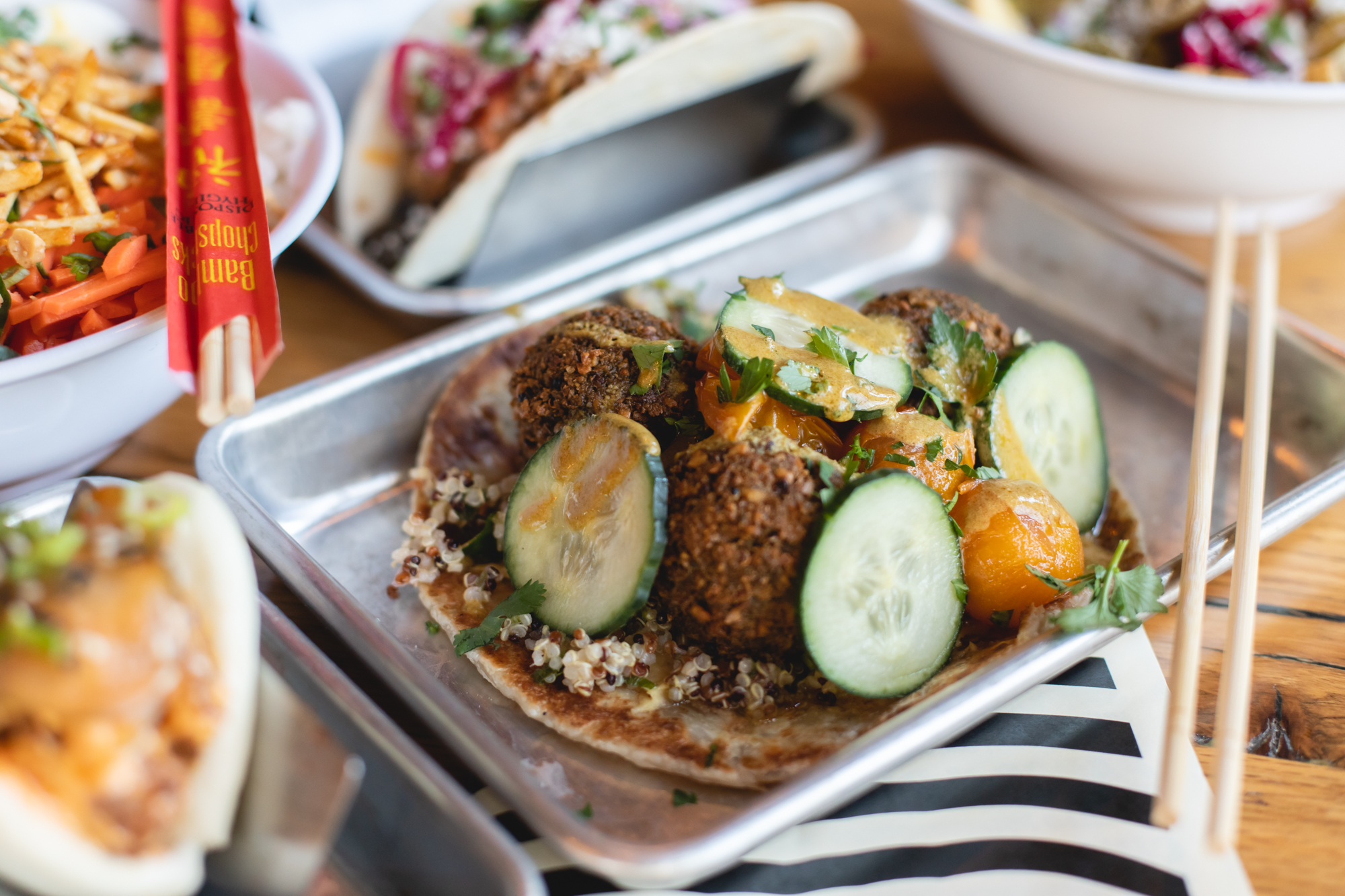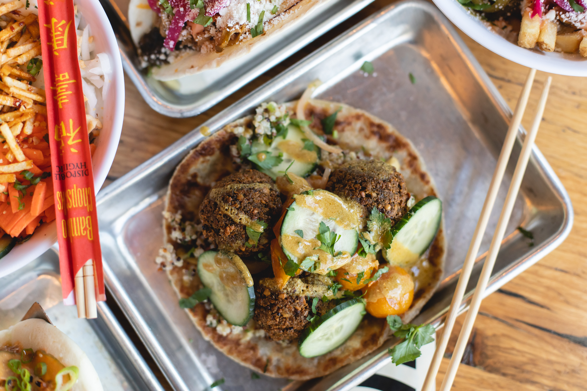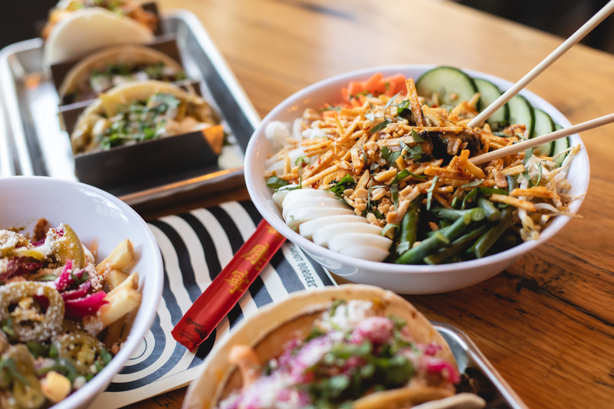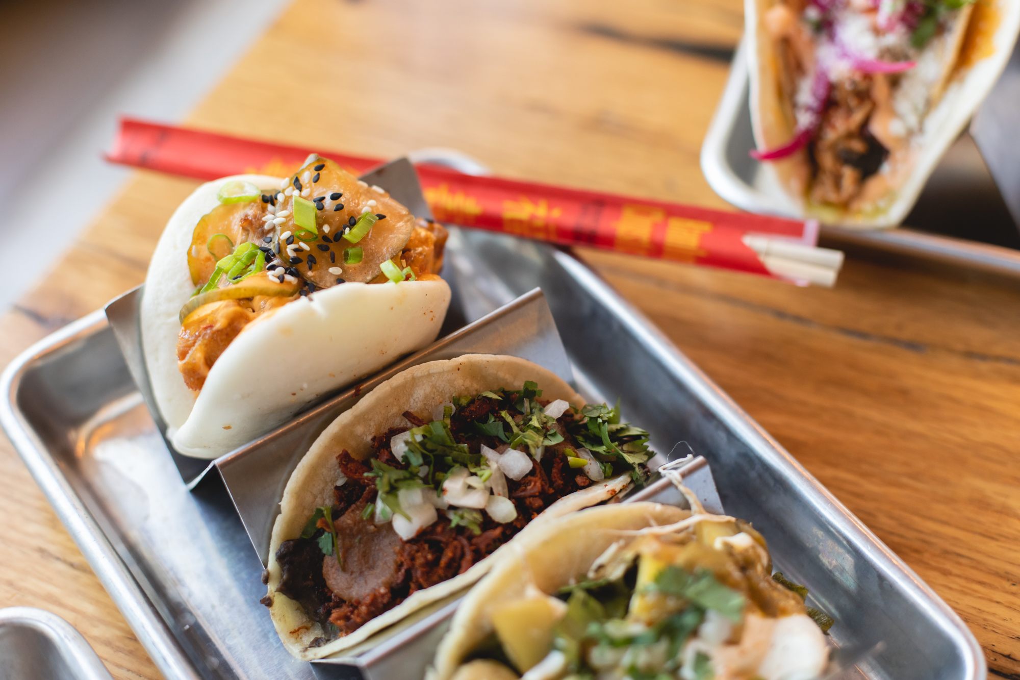 On December 22 of last year, Street Feud opened in its first standalone location on East Colfax. Following a stint at Avanti Denver — that lasted from August 2019 through March 2020 — the concept has finally reemerged in a fully decked-out refurbishing of what was formerly Solera Restaurant and Wine Bar. Amidst boomboxes, Nike Dunks and a wall-to-wall overlay of iconic, decade-spanning memorabilia, chef Merlin Verrier has been crafting an international amalgam of street fare fit for the discerning palate. This is a place to snack well and feast fancifully, with tacos, wraps, buns, fries, bowls and beverages arriving from every corner of the globe. This is corner-stand food, all presented with high technique and a clear penchant for cheer.