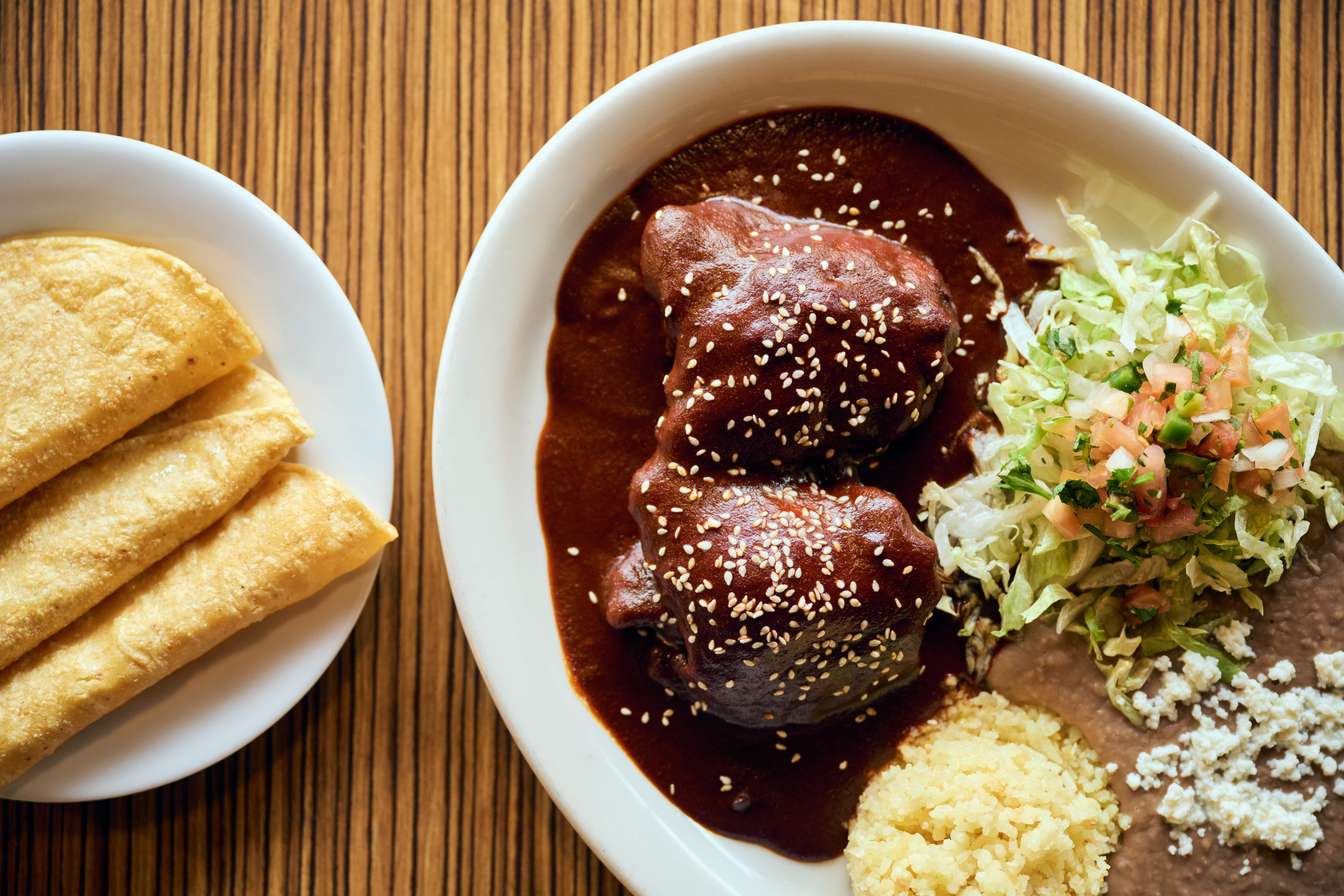 Food-wise, much of the menu is quite similar to the offerings found at the previous incarnation, though it would appear that the in-house cooks have been perfecting each item in terms of nuance and depth of flavor. The tacos are an obvious choice, with the lengua being one of the best in the city. Birria tacos ($12.95) are one of the few truly new items, and vastly outshine many of the iterations that have popped up as the style has become a local trend. The Palenque Mole ($15.95) — with bone-in chicken, house-made refried beans, rice, lettuce, pico, fresco cheese and a choice of either flour or corn tortillas — is appropriately robust, both in size and complexity.