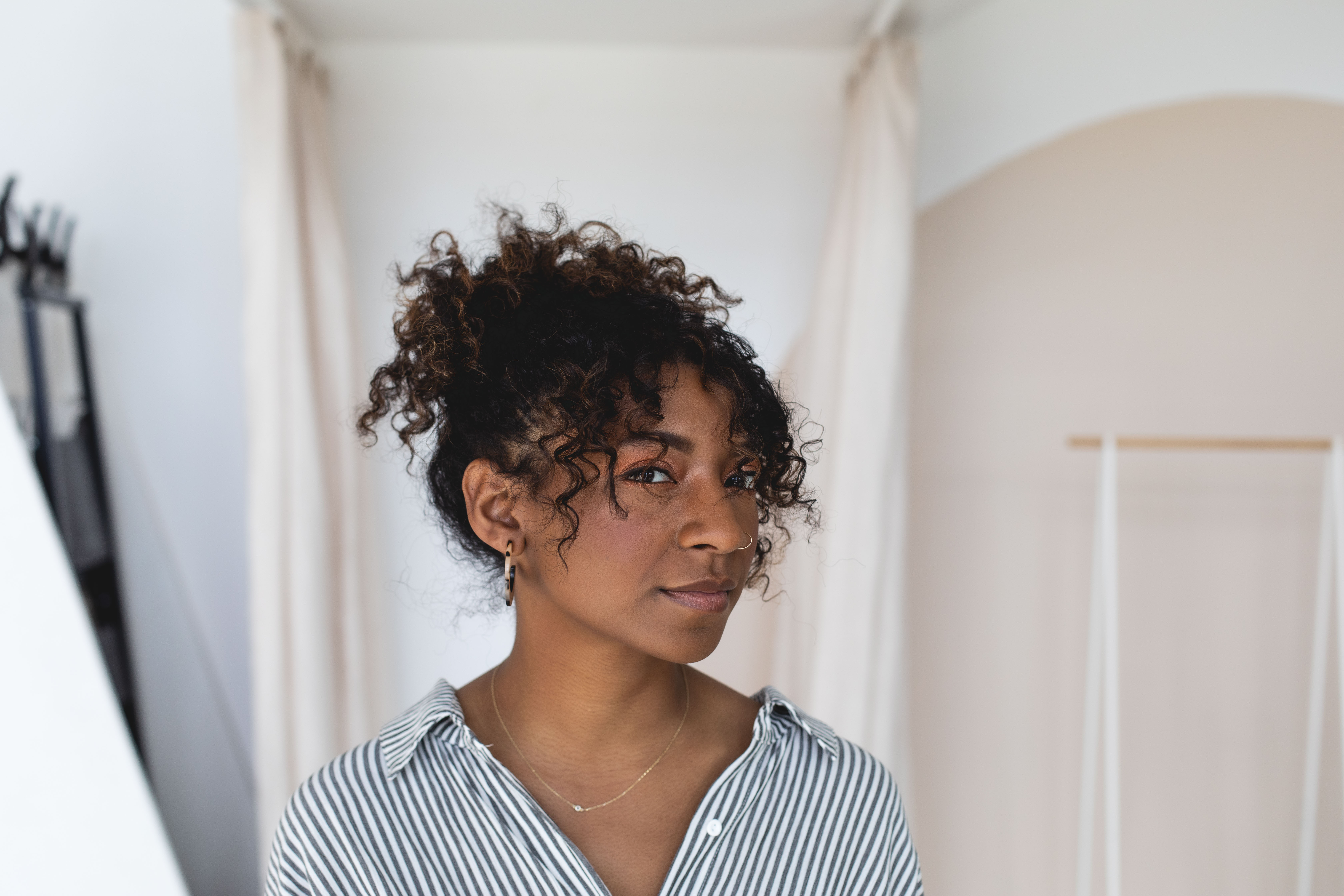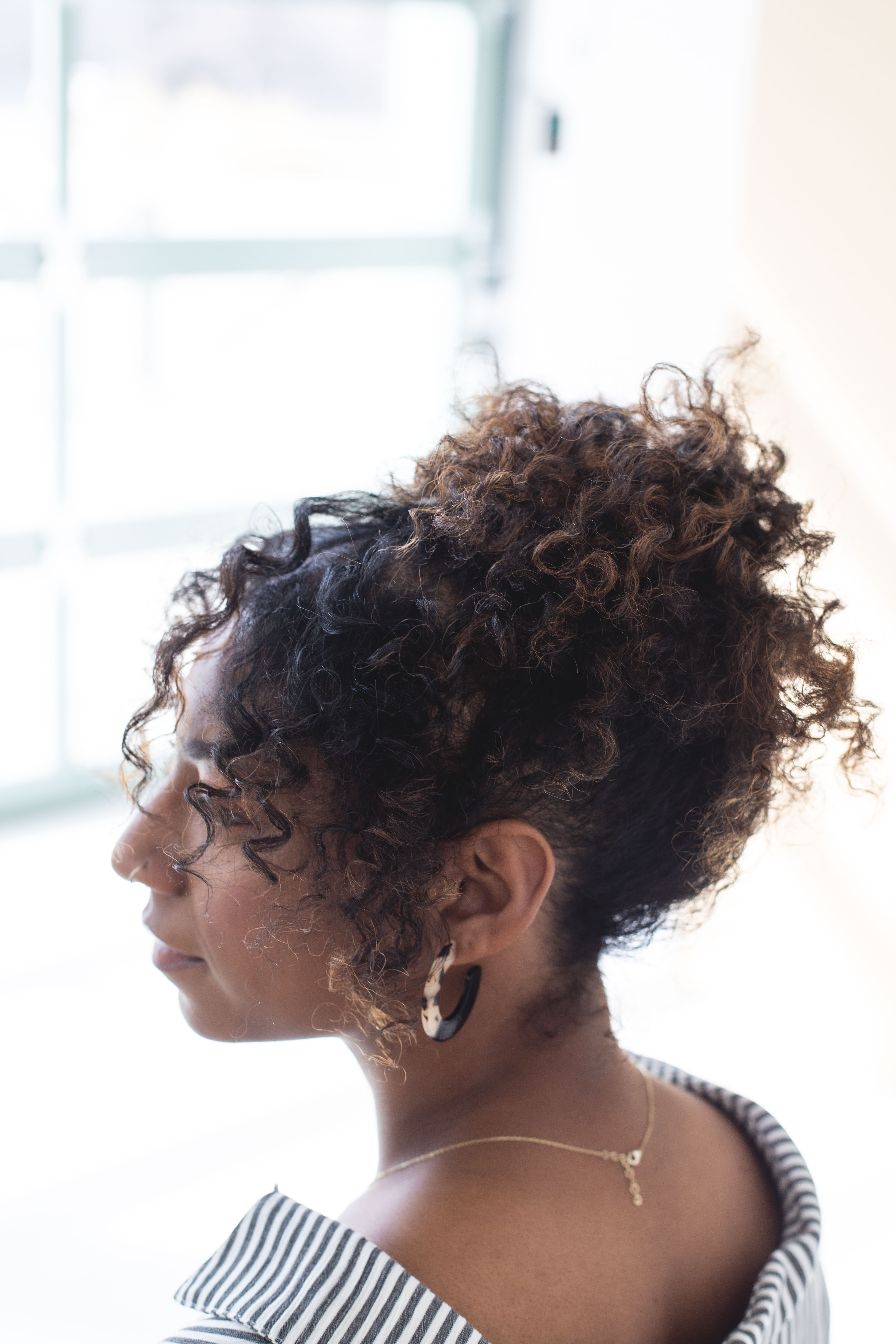 For both looks, we opted for neutral makeup using colors present in the pieces that McClendon and I were wearing. This allowed our skin tones and eyes to pop but also brought out the stripes. We also embraced our curls, resulting in versatile looks that will take any daily task or night on the town by storm.
