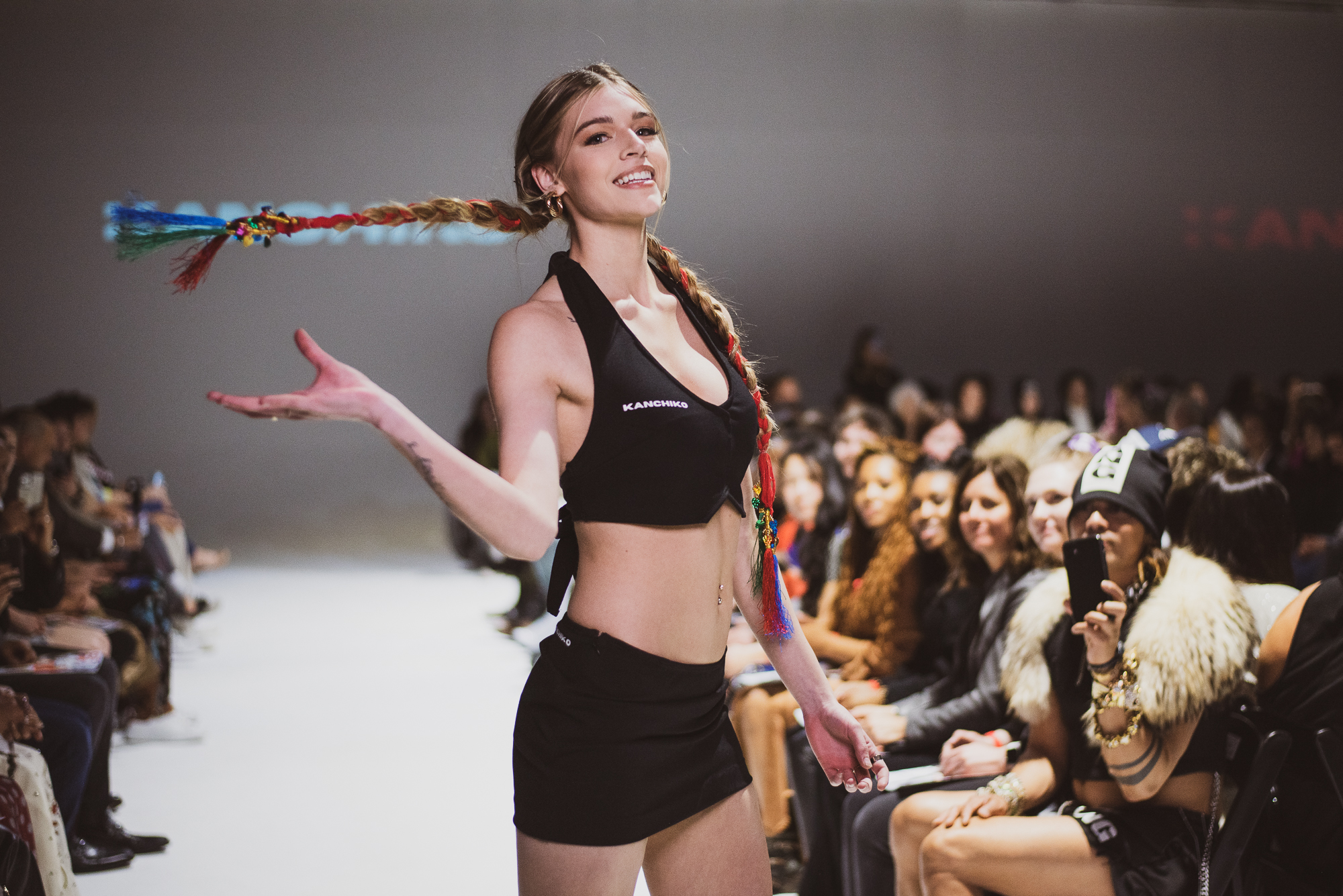 The mixture of electronic music and unique choreography dropped the crowd into a video game. Accessories were everything in this show – every single detail was thoughtfully and meticulously planned. From Croc jibbitz to a mustard packet necklace, designer Chaim Slime created a collection reminiscent of the fun of being a kid in the 90s.
