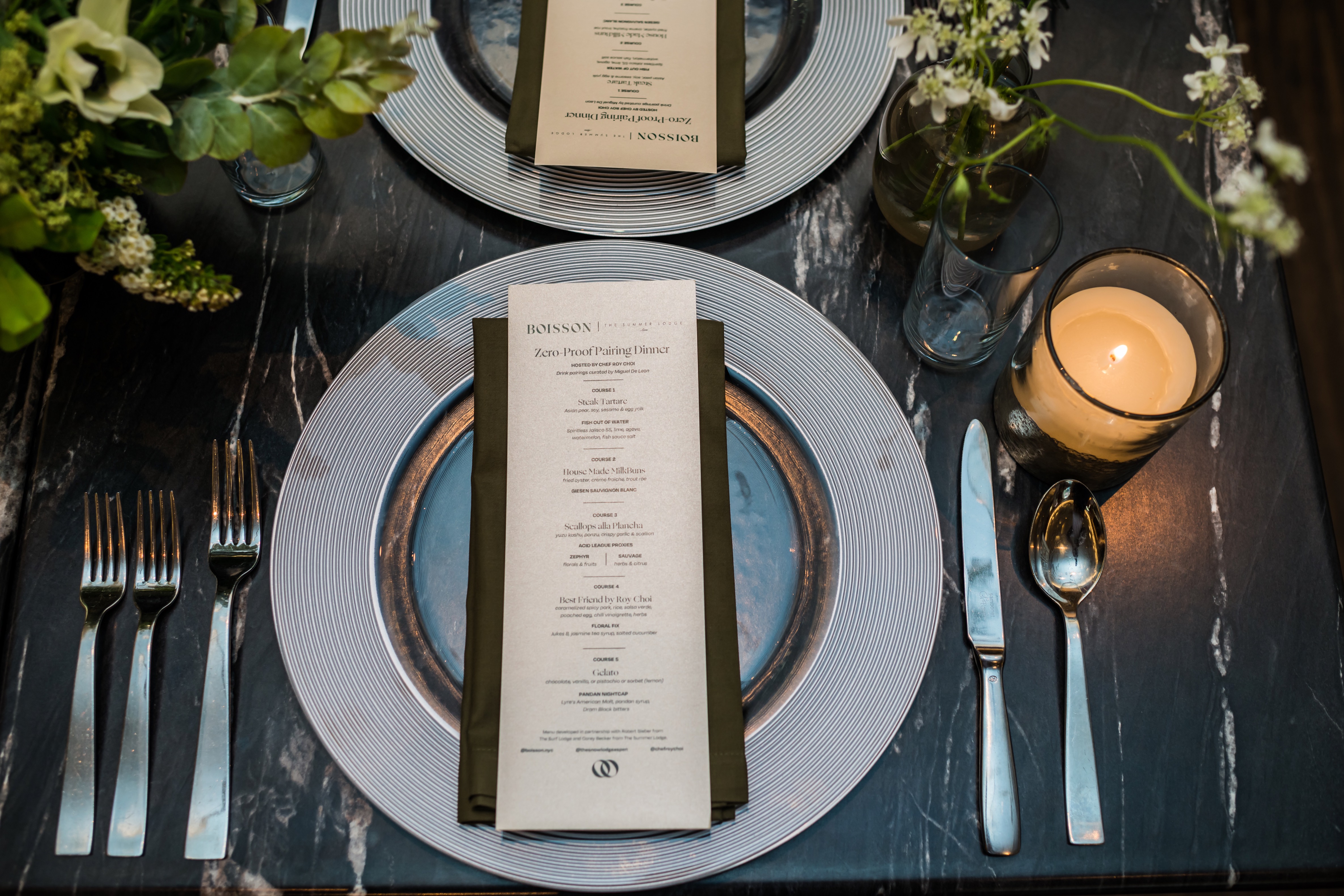 The outlying parties indeed pulled out all the stops, culminating with an invite-only Busta Rhymes show taking place Saturday afternoon at a palatial, five-story residence in the hills overlooking downtown. A Thursday night welcome party put on by Boisson — a growing purveyor of non-alcoholic spirits with multiple brick-and-mortars in New York — tapped Roy Choi and Michelin Sommelier of the Year Award-recipient and James Beard Award-winning journalist Miguel de Leon for a five-course paired meal that incorporated non-alcoholic wines, proxies and de Leon’s own creations.