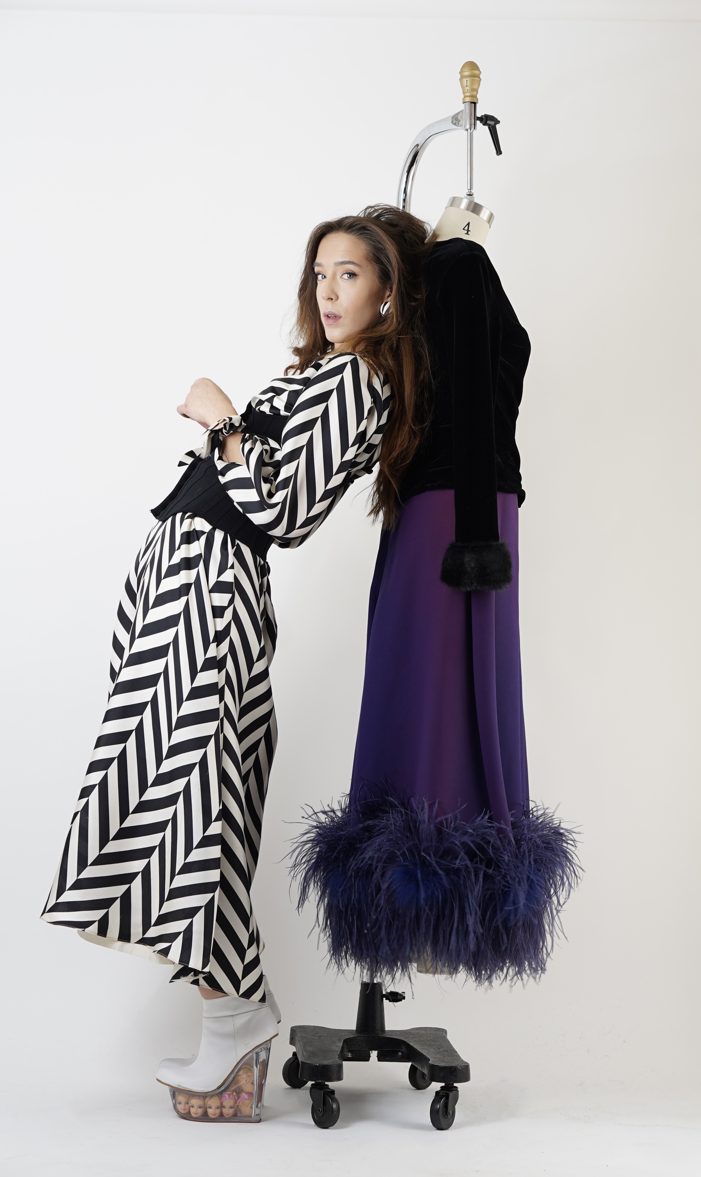 When it comes to clothes, Mikobi takes inspiration from his world travels to Antwerp, Amsterdam, New York and Denver. He heavily focuses on storytelling with each design, silhouette and proportion.