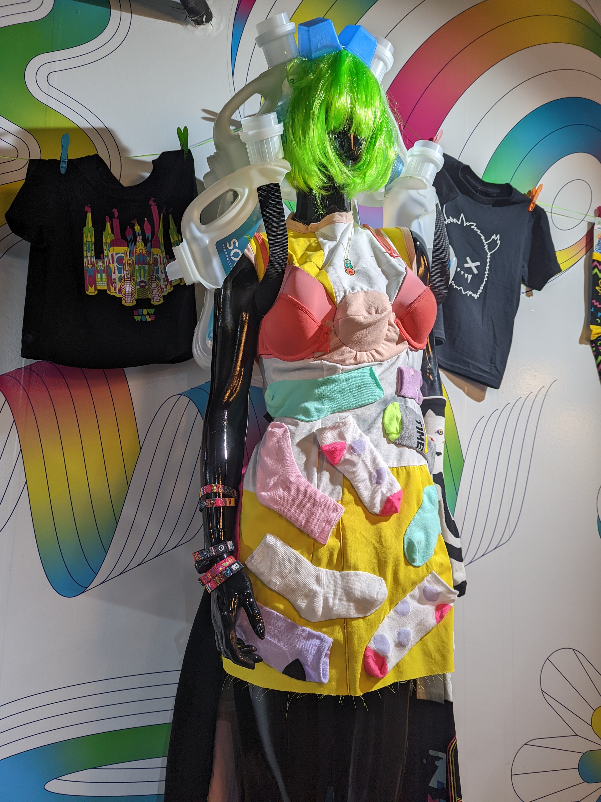 During her time at Meow Wolf, she created a character named Sleevy Nicks; made out of hundreds of sleeves that she cut up. Major has also turned cards used throughout the exhibit into an outfit — needless to say, being sustainable is the backbone of her DFW collection.