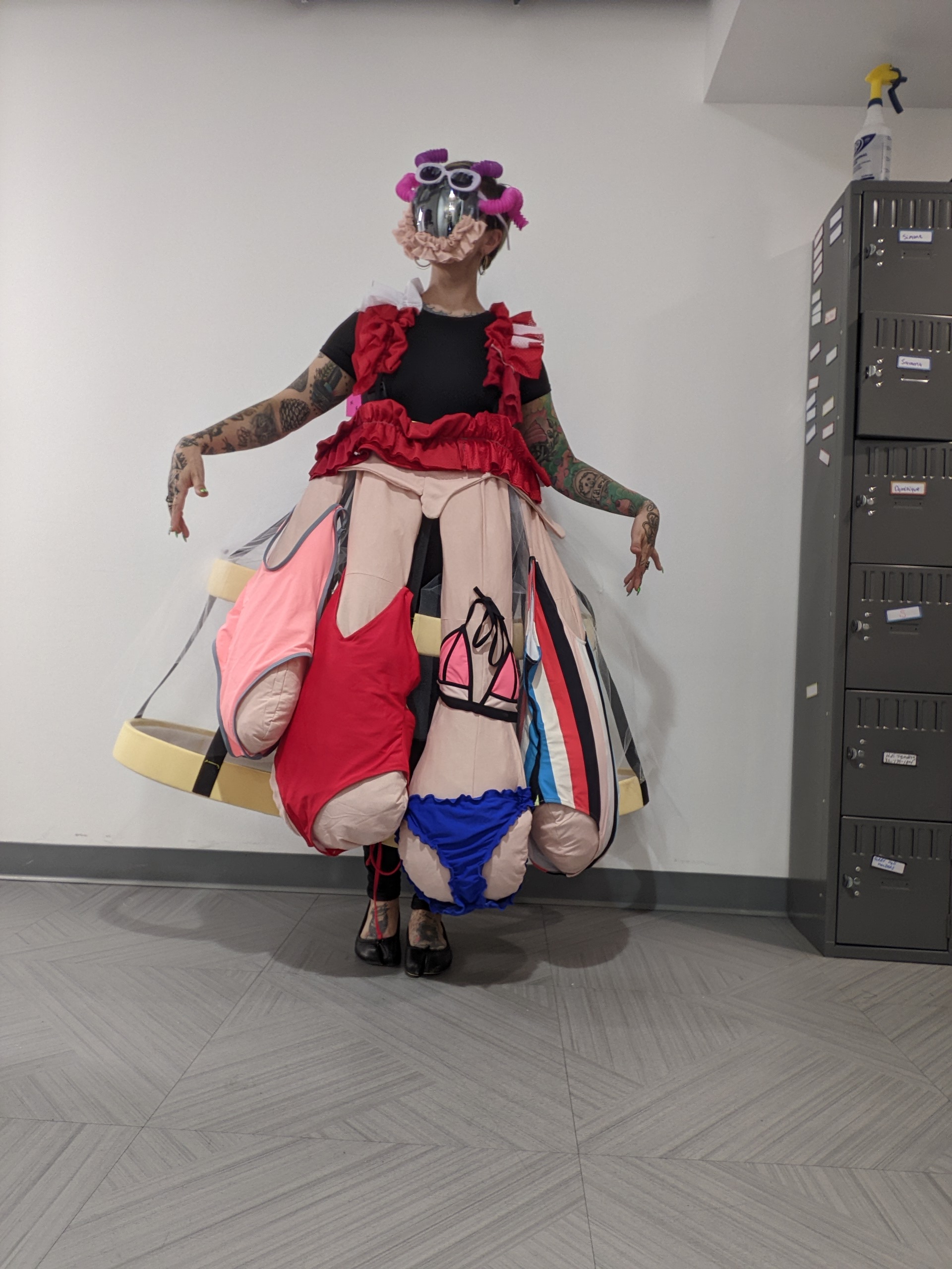 Major describes her designs as weird, avant garde, maximalist and colorful; the opposite of her personal style. She likes creating extravagant looks that allow people to use their imaginations.